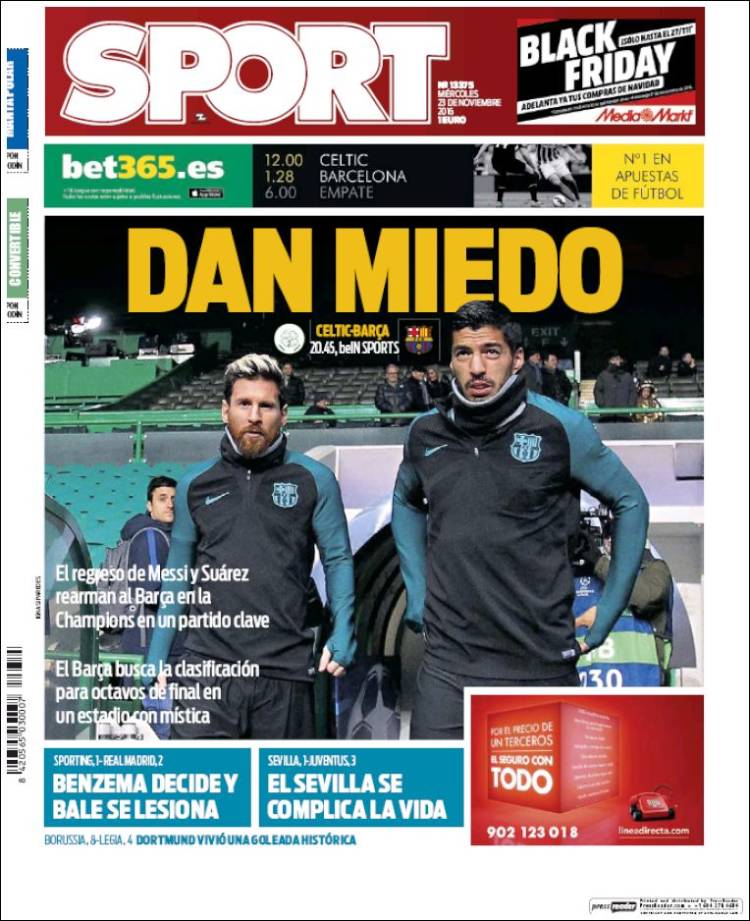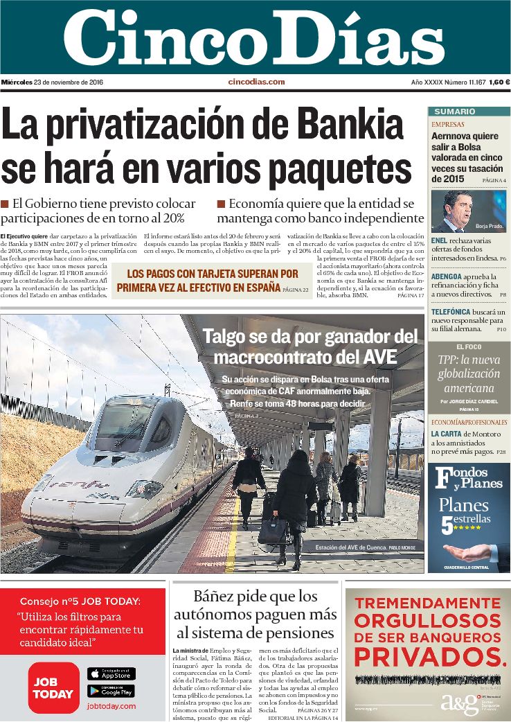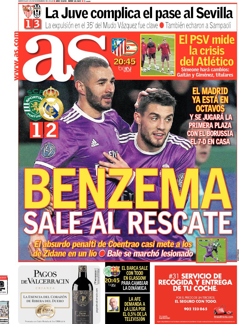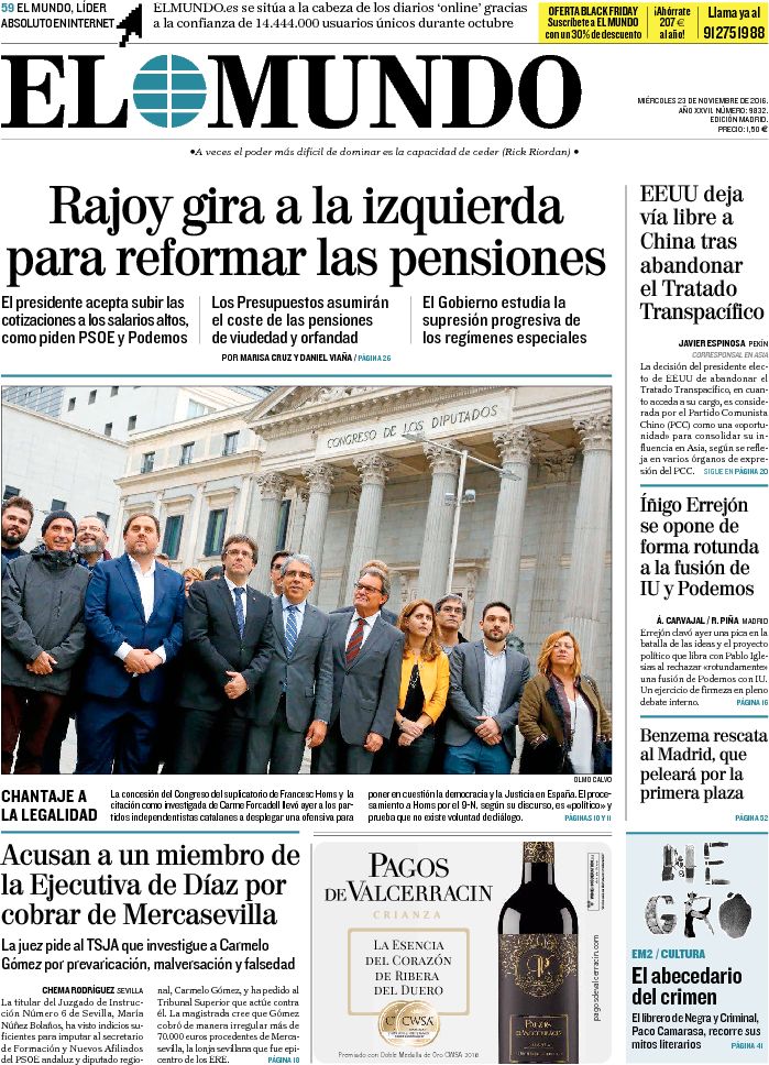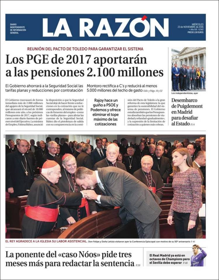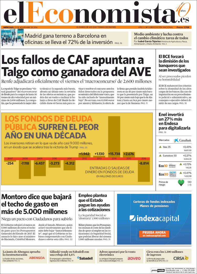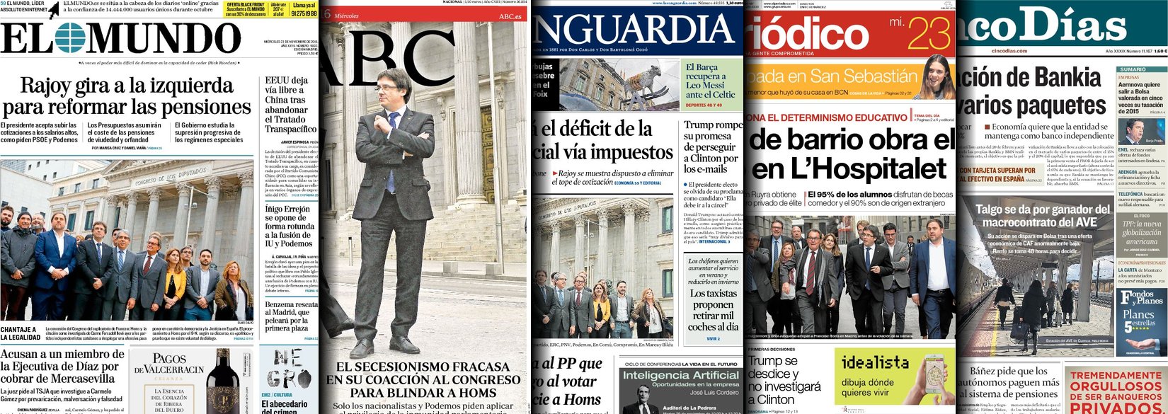 Portadas de los diarios El Mundo, El País, ABC, La Razón, La Vanguardia, Cinco Días, El Economista, Marca, As, Mundo Deportivo y Sport.