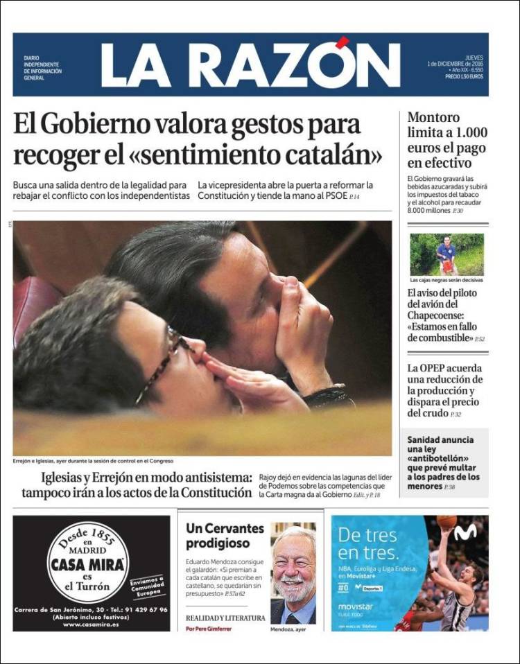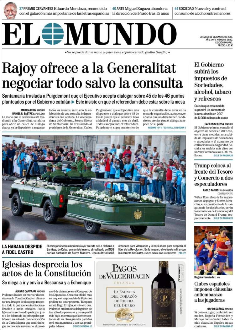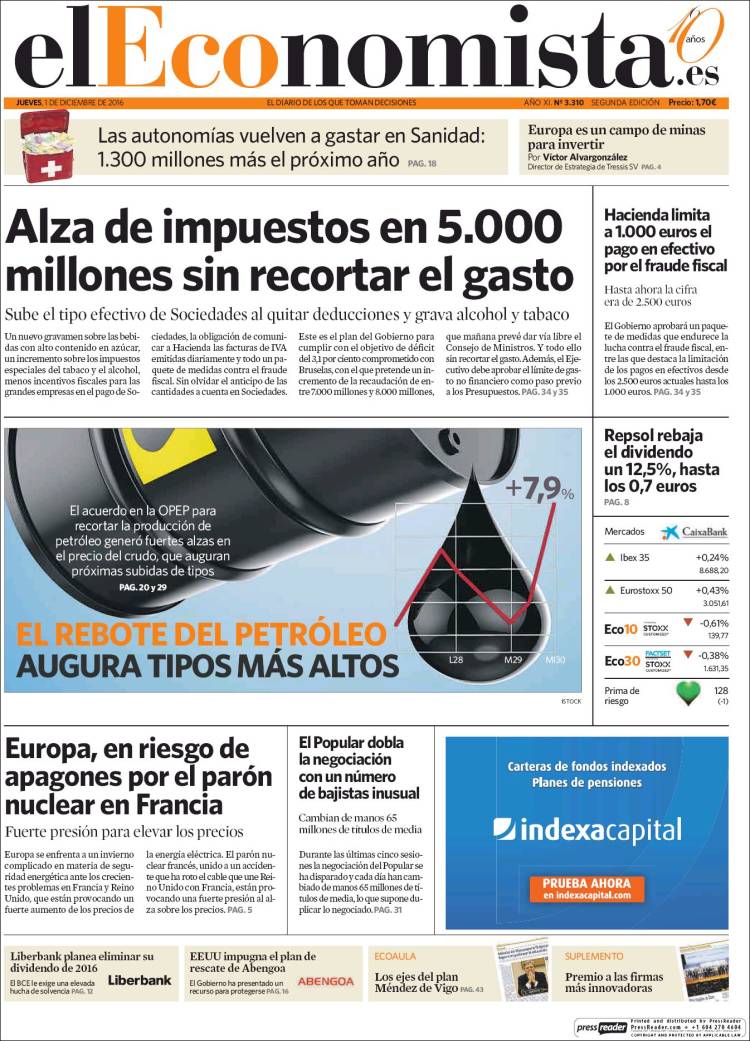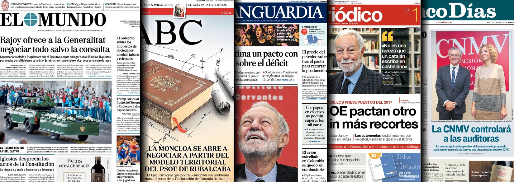 Portadas de los diarios El Mundo, El País, ABC, La Razón, La Vanguardia, El Periódico, Cinco Días, El Economista, Marca, As, Mundo Deportivo y Sport.