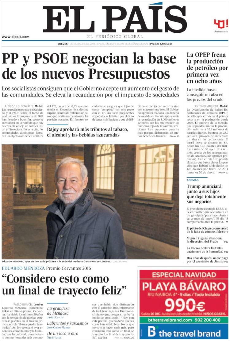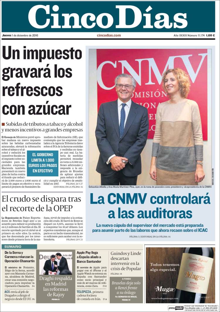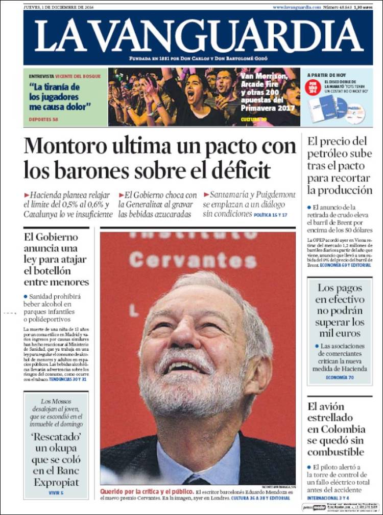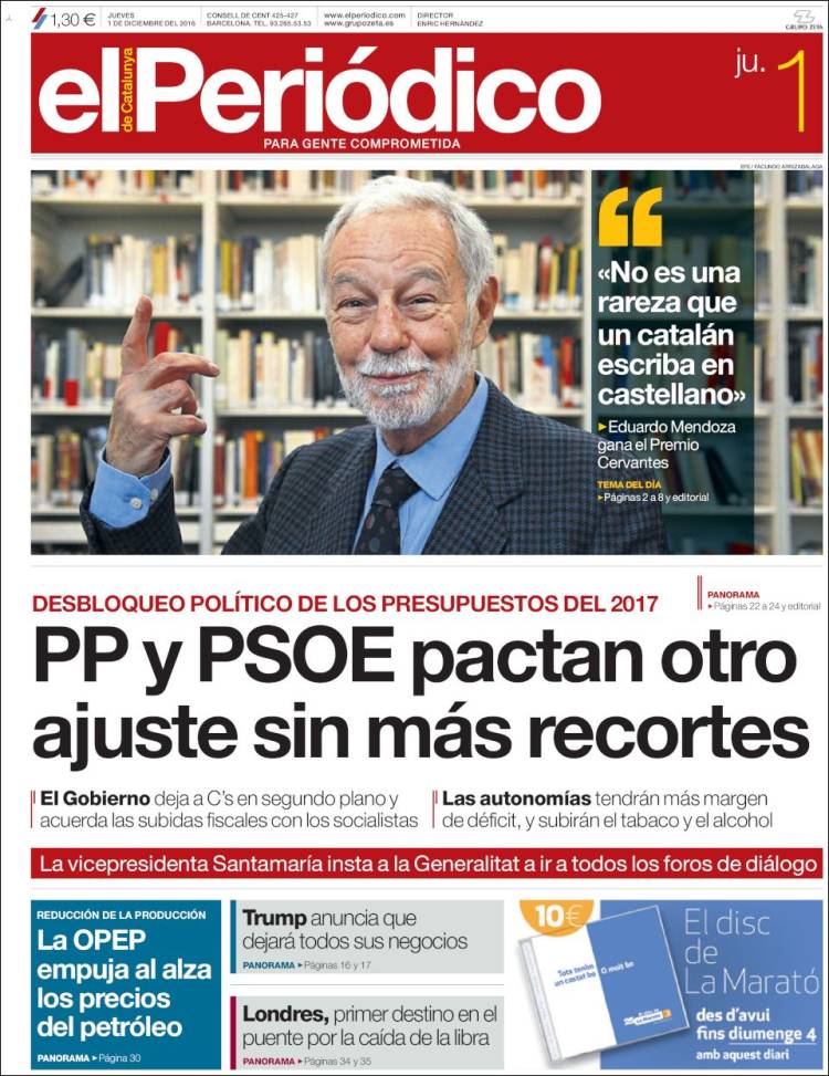 Portadas de los diarios El Mundo, El País, ABC, La Razón, La Vanguardia, El Periódico, Cinco Días, El Economista, Marca, As, Mundo Deportivo y Sport.