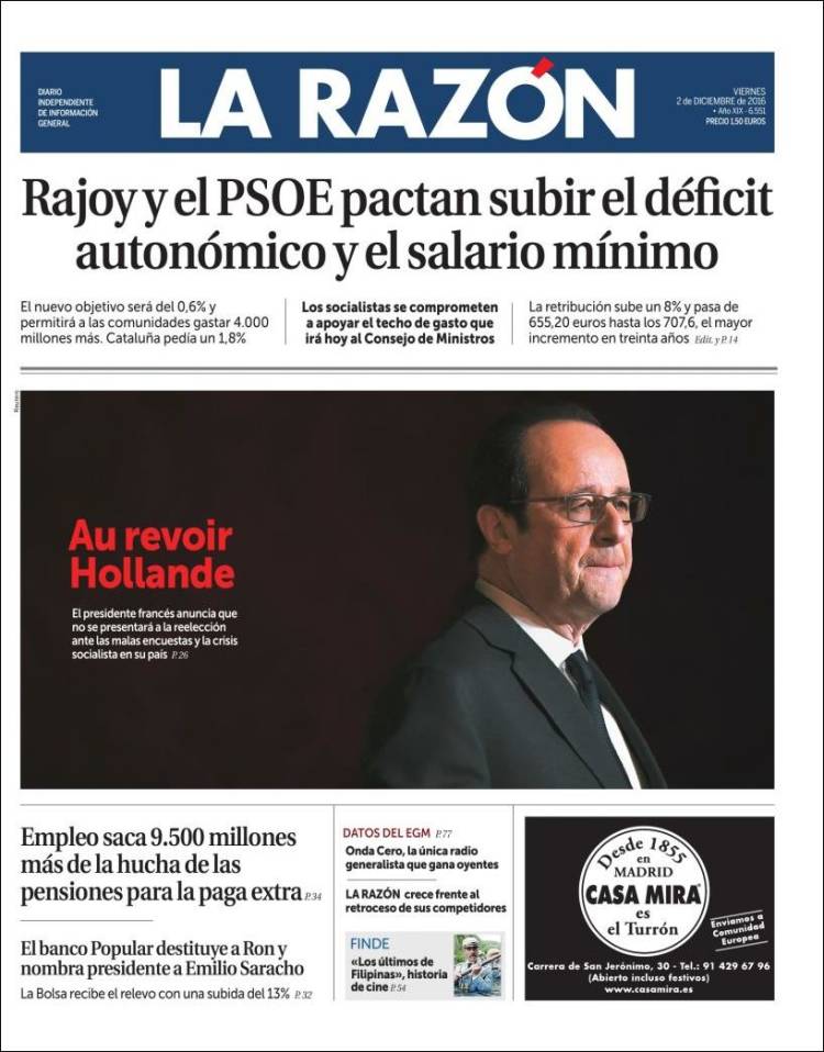 Las imágenes más impactantes de la tragedia de los incendios en España Pablo Pardo Las fotos del Comité Federal del PSOE: sonrisas, caras largas y los últimos forofos de Sánchez M. R. M. 0 comentarios VerOcultar todos los comentarios Secciones Portada Opinión España Andalucía Madrid Canarias Valencia Internacional Defensa Corazón Viajar y Comer Deportes Sucesos Cultura Libros Cine Series Tecnociencia Salud Vídeos Fotos Canales Servicios Me lo compro Yo quiero uno Tráfico Precio gasolineras Radares El Tiempo Gestiona tu patrimonio Participación Móviles Boletines RSS Versión accesible Últimas noticias Archivo Hemeroteca Personajes Lugares Empresas Organismos Temas Eventos LD Redes Facebook X Instagram YouTube WhatsApp Telegram