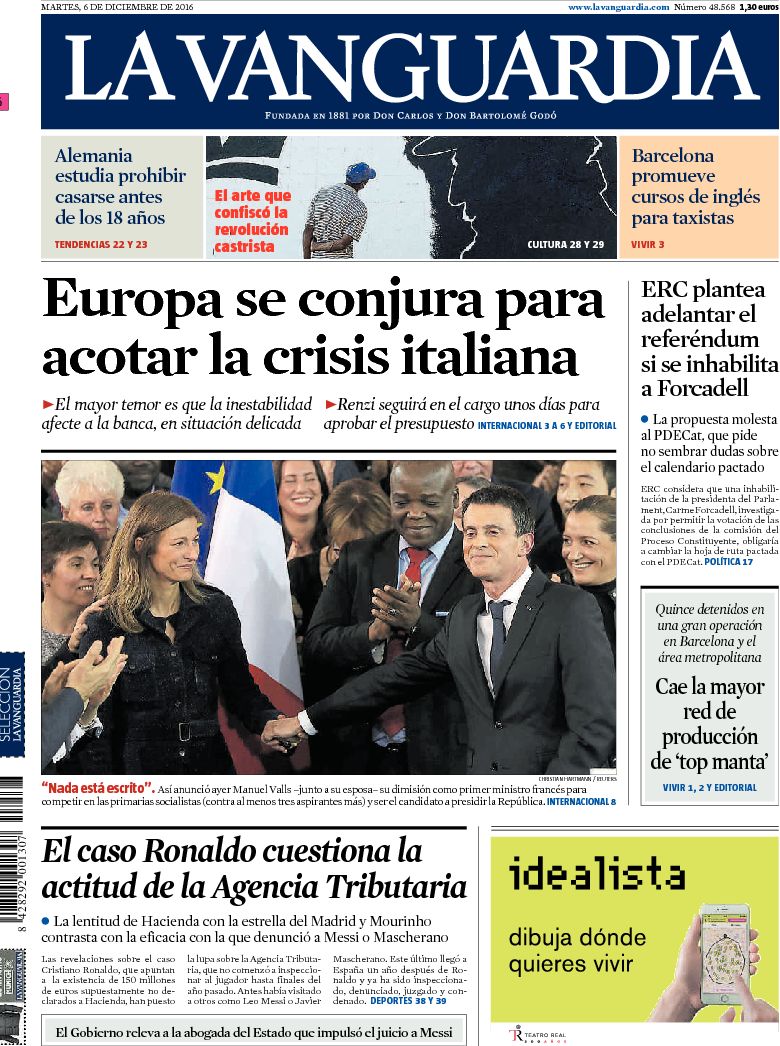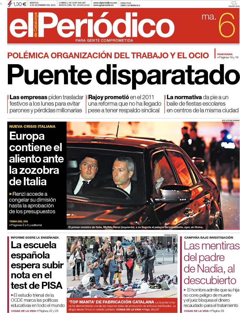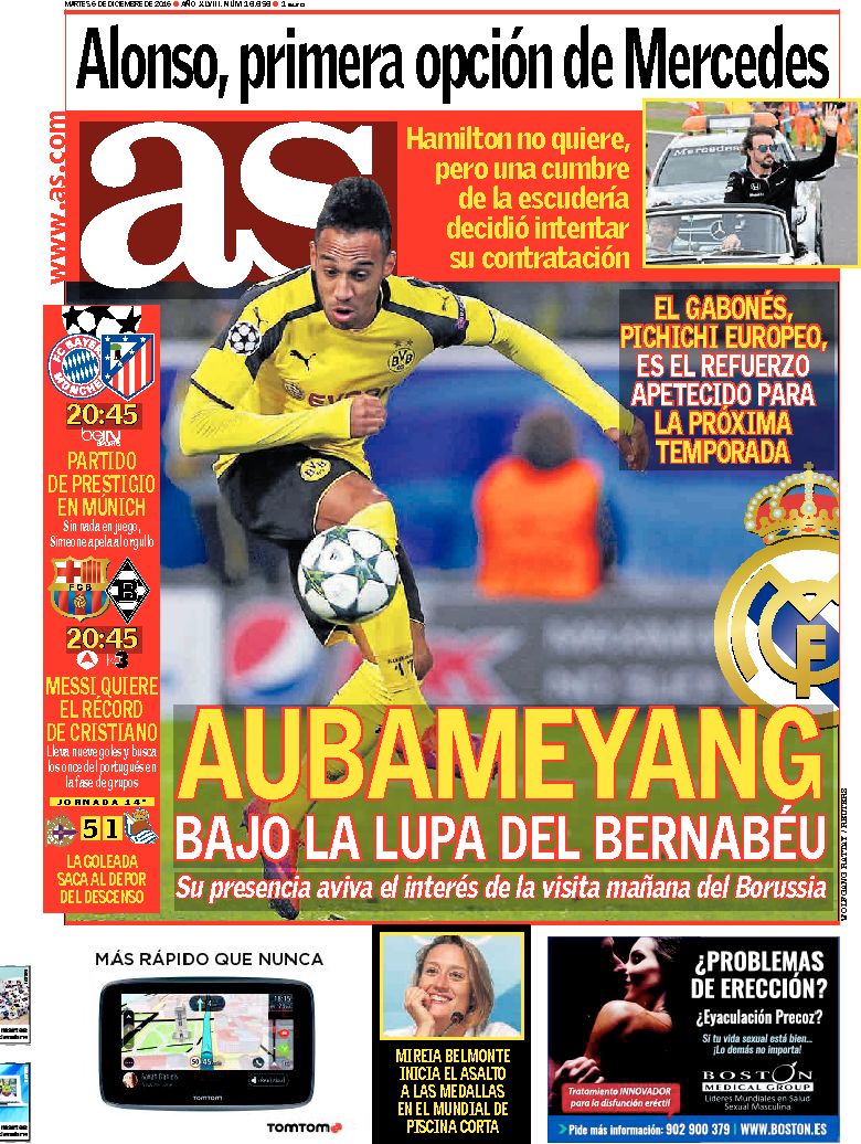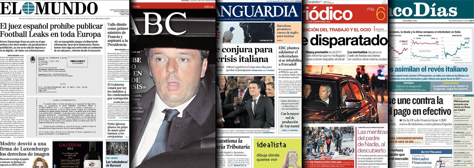 Portadas de los diarios ABC, As, Cinco Días, El Periódico y La Vanguardia.