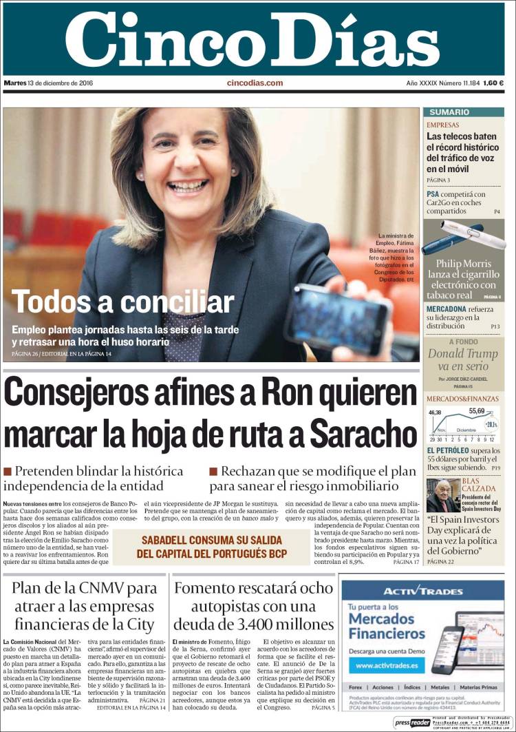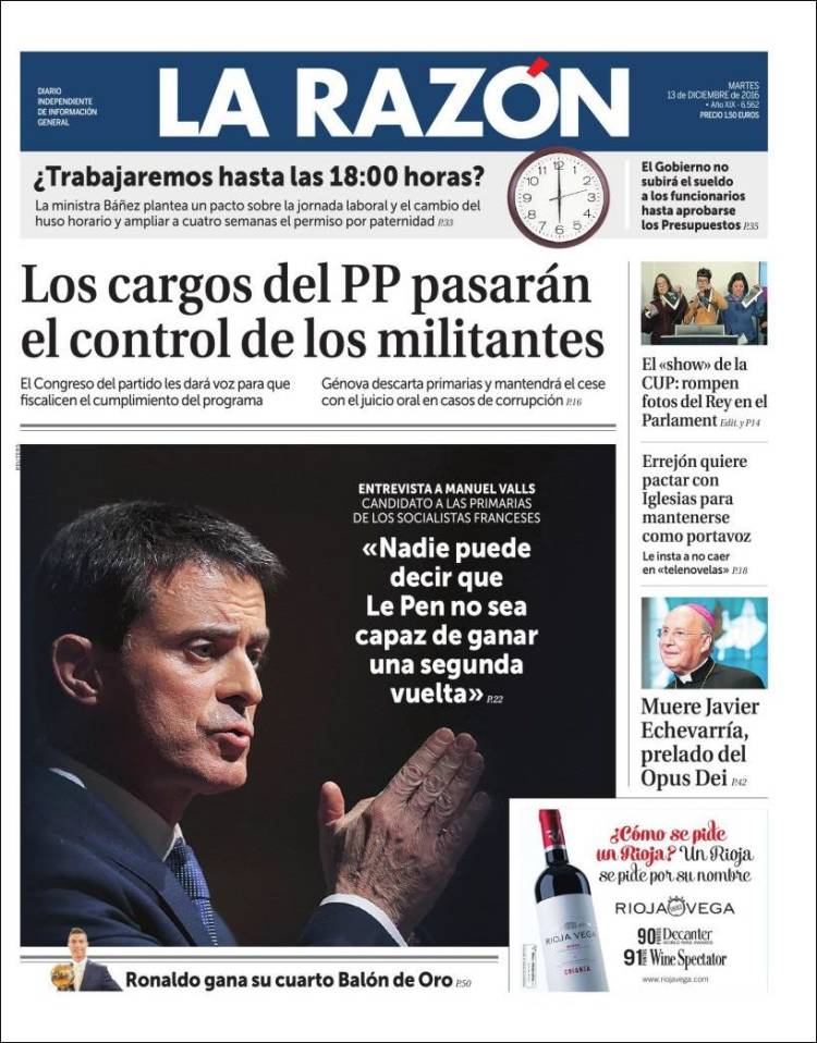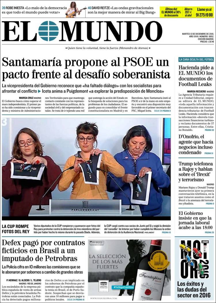 Portadas de los diarios El Mundo, El País, ABC, La Razón, La Vanguardia, El Periódico, Cinco Días, El Economista, Expansión, Marca, As, Mundo Deportivo y Sport.