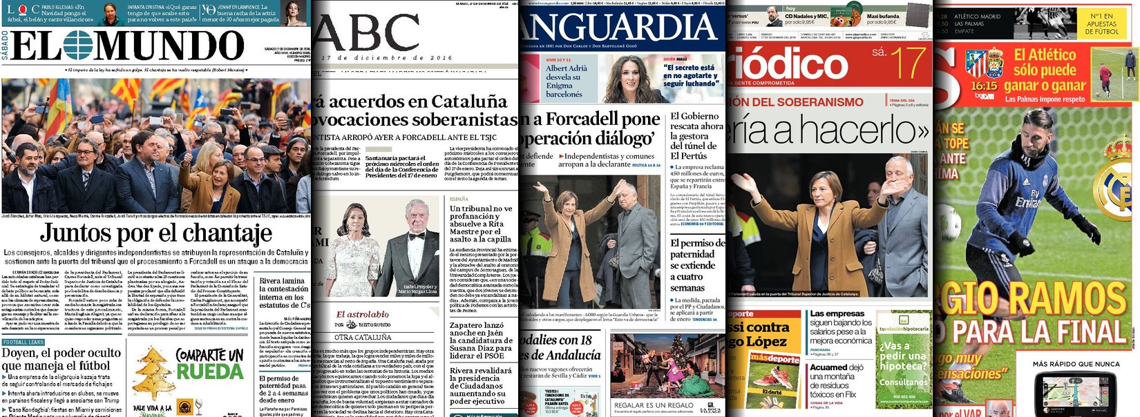 Portadas de los diarios ABC, As, El Periódico y La Vanguardia.