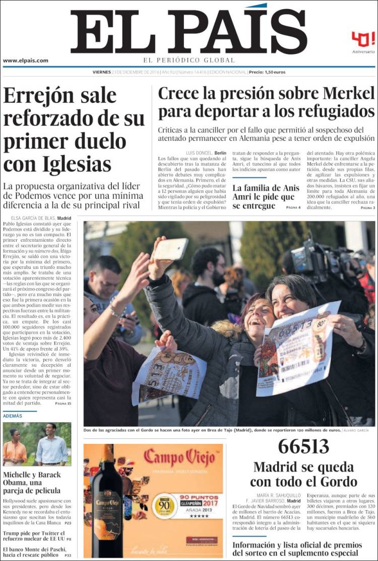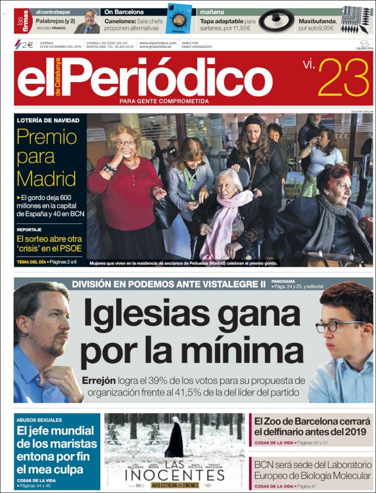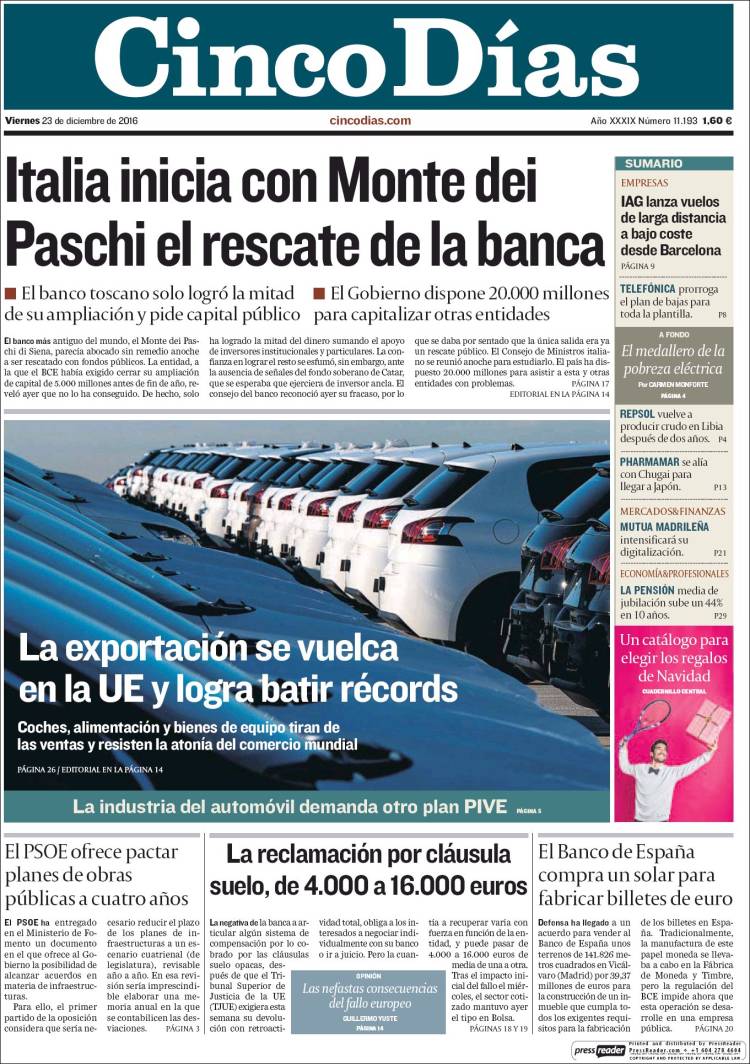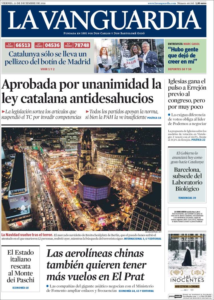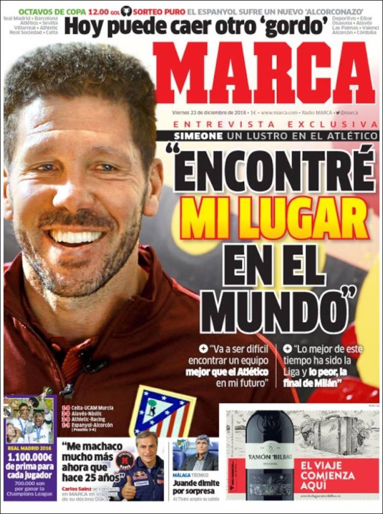 Portadas de los diarios El Mundo, El País, ABC, La Razón, La Vanguardia, El Periódico, Cinco Días, El Economista, Expansión, Marca, As, Mundo Deportivo y Sport.