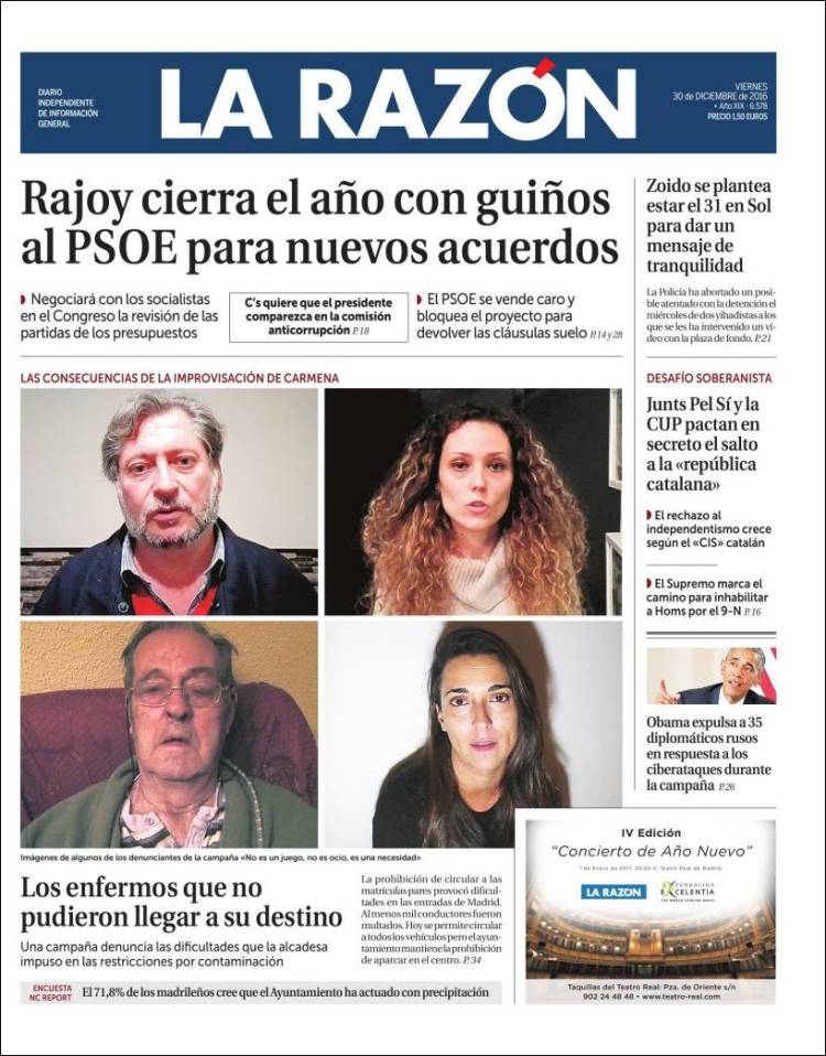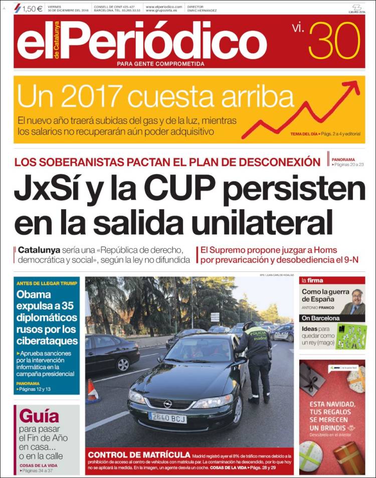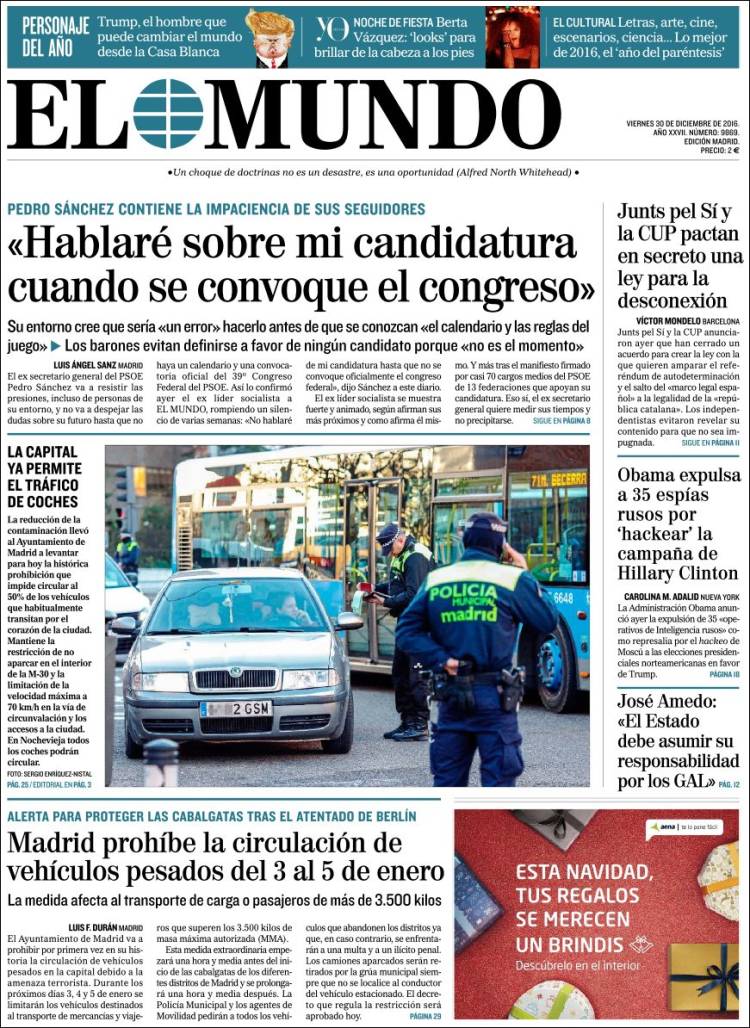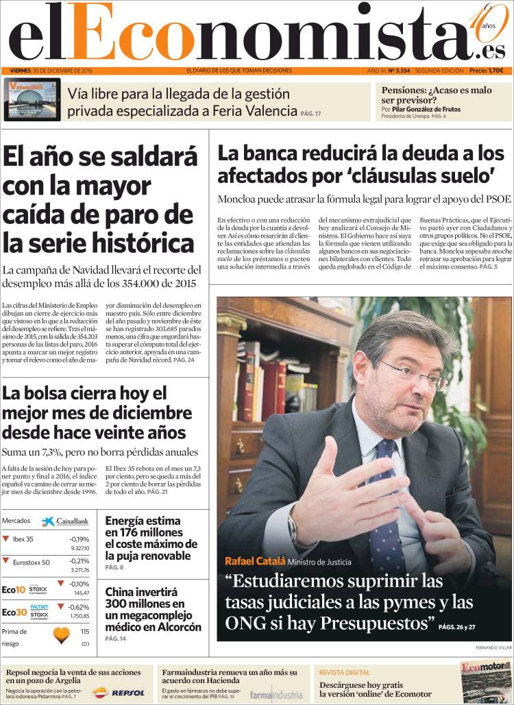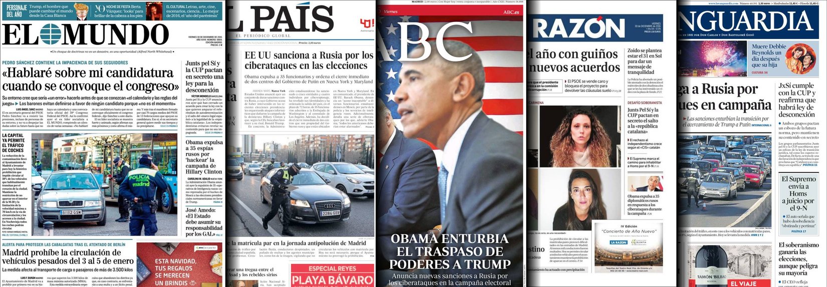 Portadas de los diarios El Mundo, El País, ABC, La Razón, La Vanguardia, El Periódico, Cinco Días, El Economista, Expansión, Marca, As, Mundo Deportivo y Sport.