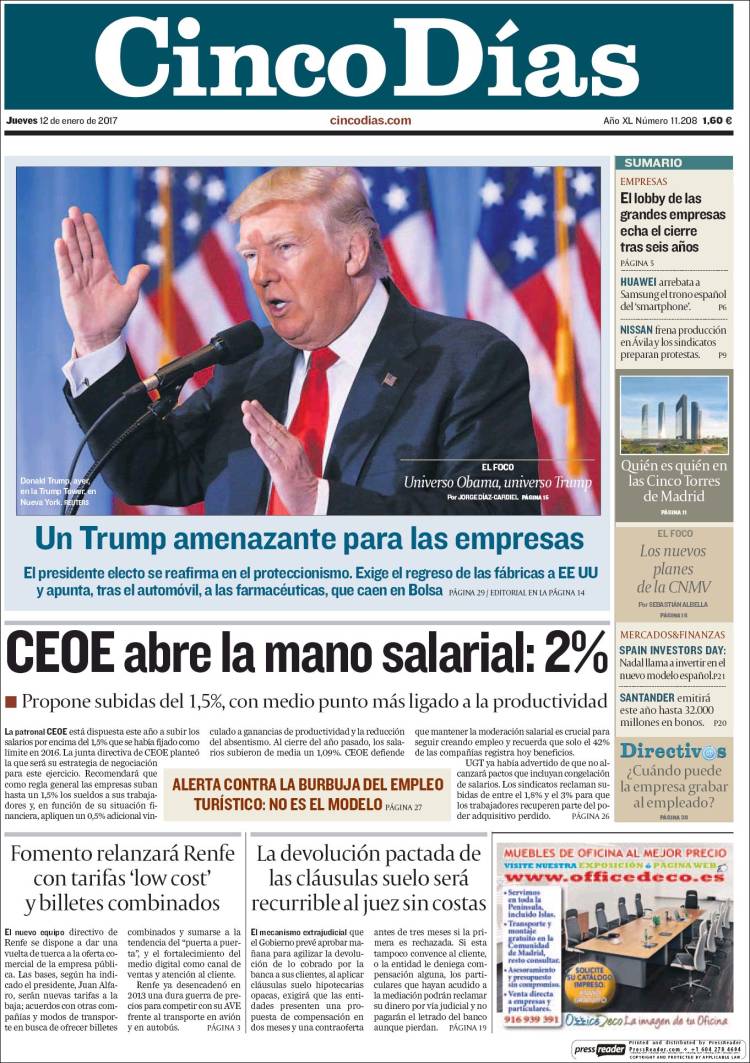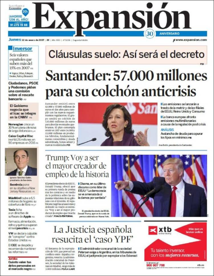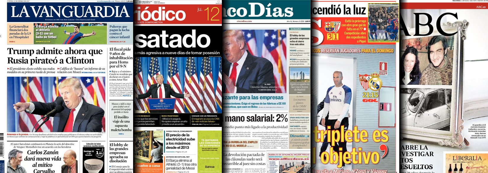 Portadas de los diarios El Mundo, El País, ABC, La Razón, La Vanguardia, El Periódico, Cinco Días, Expansión, Marca, As, Mundo Deportivo y Sport.