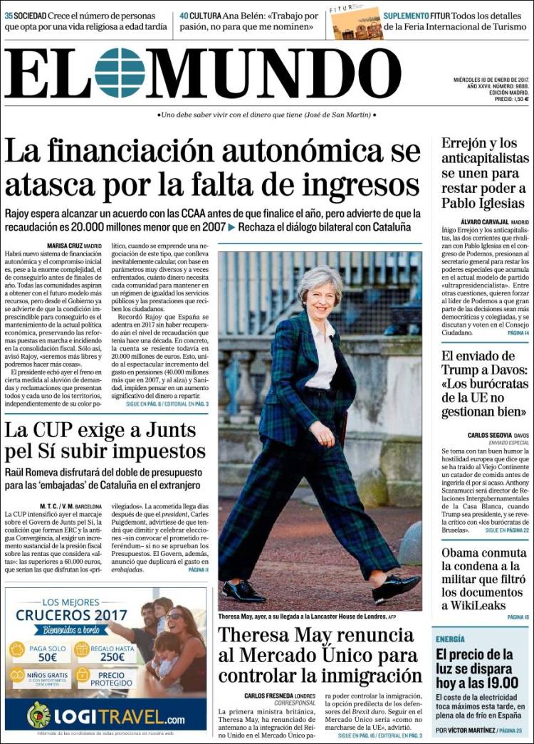 Portadas de los diarios El Mundo, El País, ABC, La Razón, La Vanguardia, El Periódico, Cinco Días, El Economista, Marca, As, Mundo Deportivo y Sport.