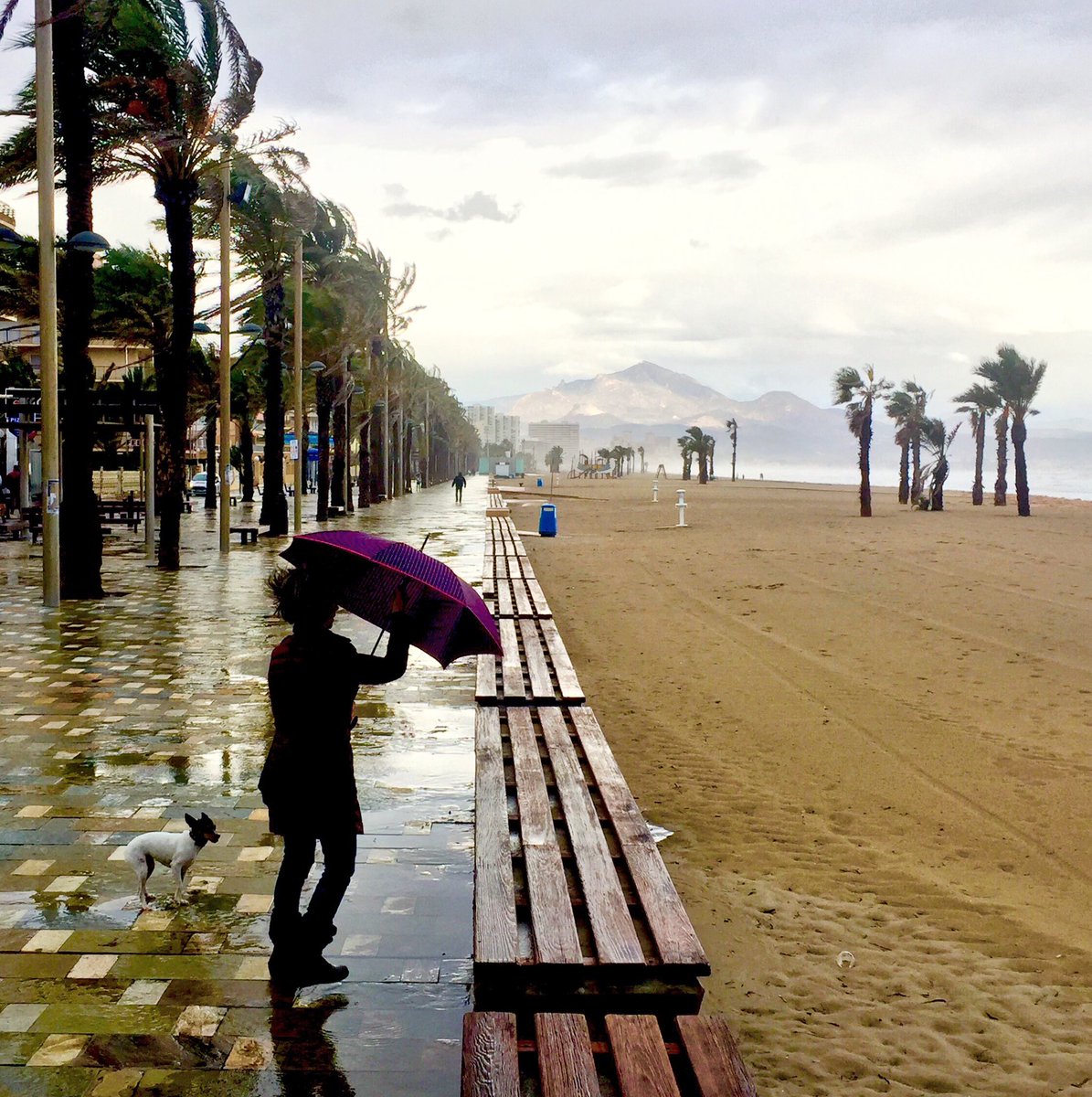 Fuertes rachas de viento en la playa de San Juan (Alicante) en la fotografía publicada por @Aliforniano