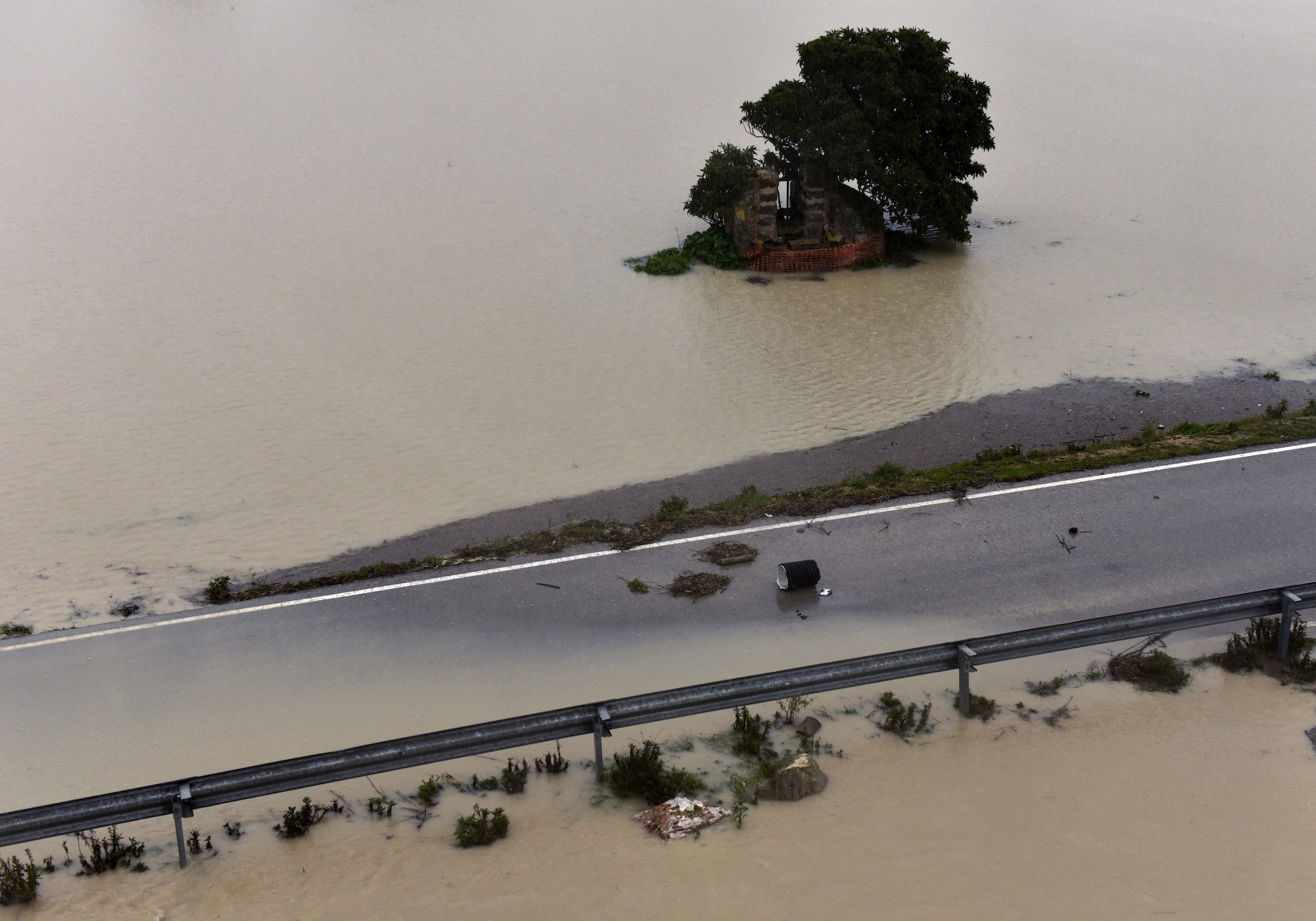 La lluvia ha provocado inundaciones en los campos y carreteras del municipio de Montuiri, que ha quedado incomunicado debido a las fuertes lluvias en la isla.