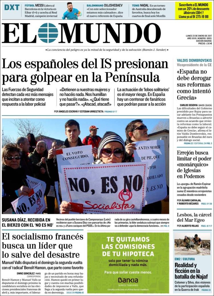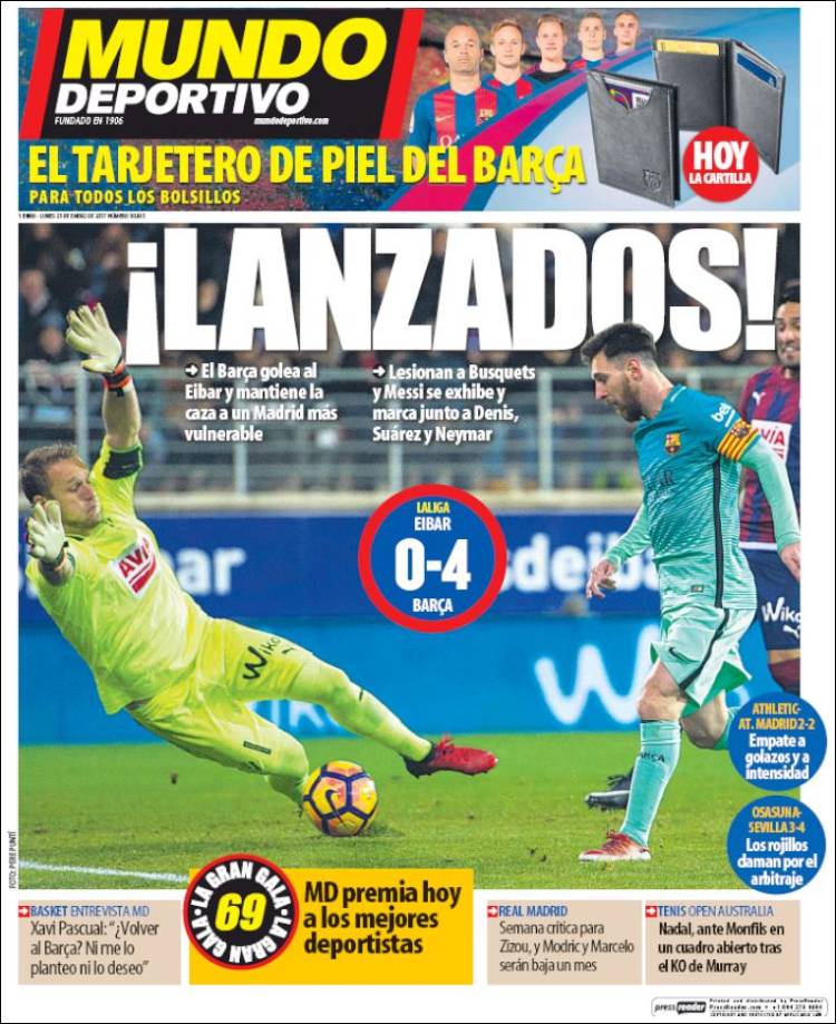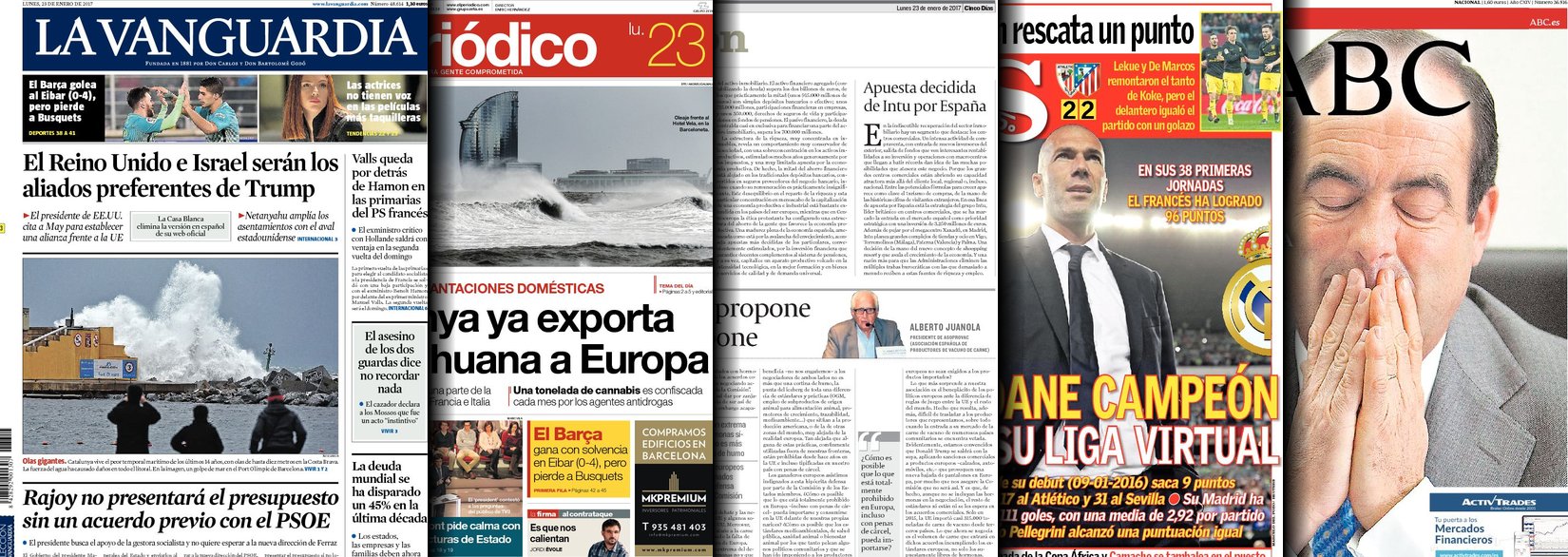 Portadas de los diarios El Mundo, El País, ABC, La Razón, La Vanguardia, El Periódico, Cinco Días, El Economista, Marca, As, Mundo Deportivo y Sport.
