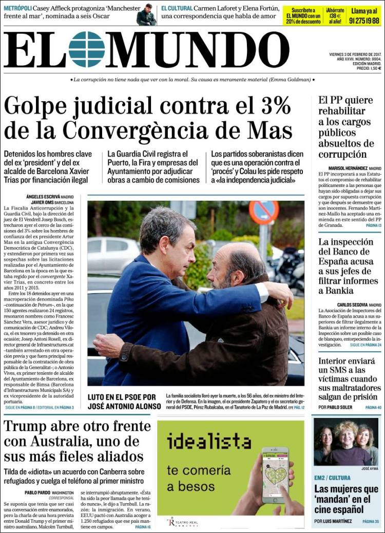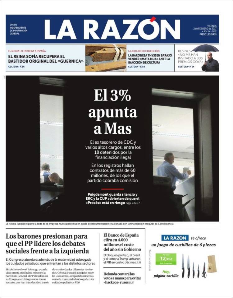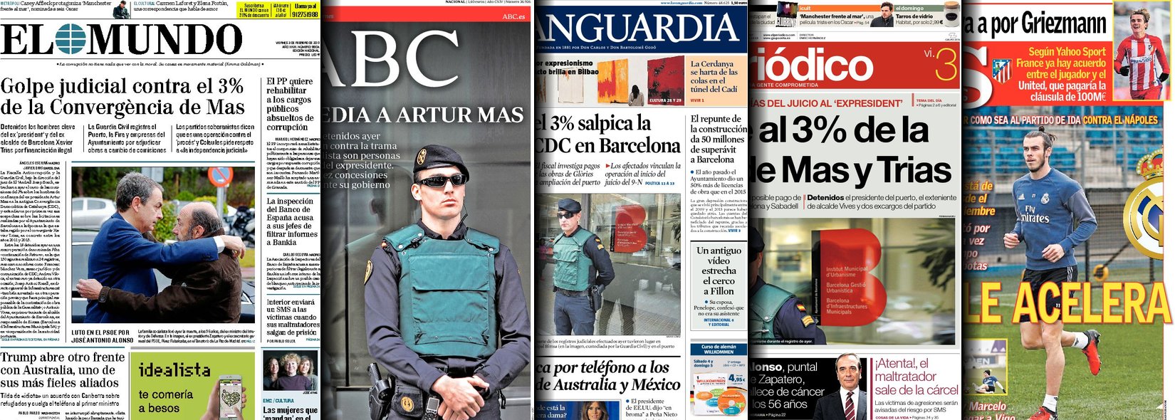 Portadas de los diarios El Mundo, El País, ABC, La Razón, La Vanguardia, El Periódico, Cinco Días, El Economista, Expansión, As, Mundo Deportivo y Sport.