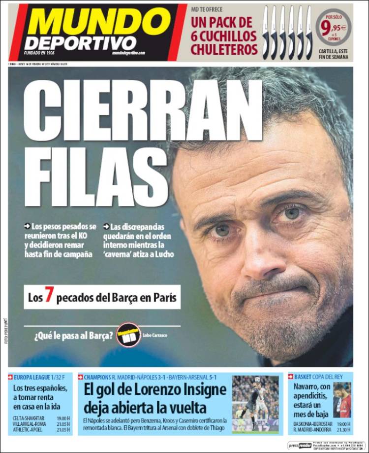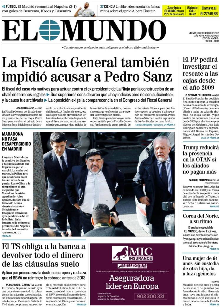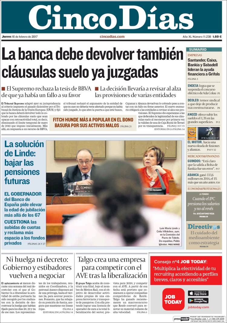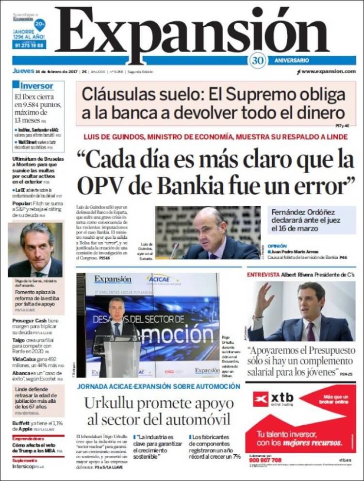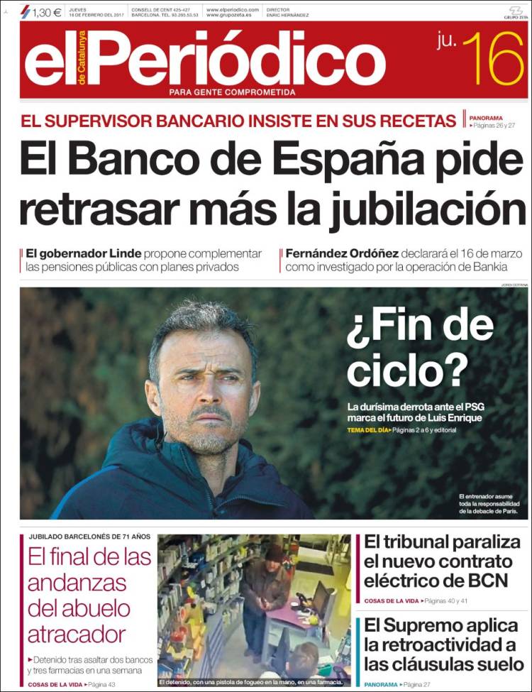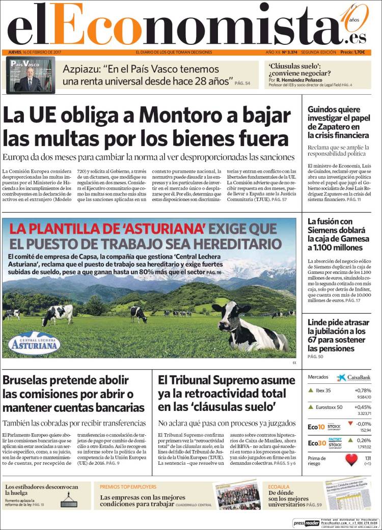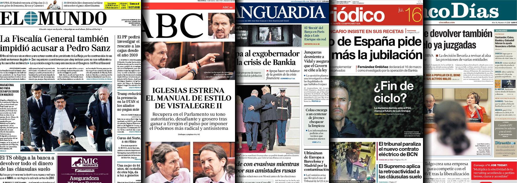 Portadas de los diarios El Mundo, El País, ABC, La Razón, La Vanguardia, El Periódico, Cinco Días, El Economista, Expansión, As, Mundo Deportivo y Sport.