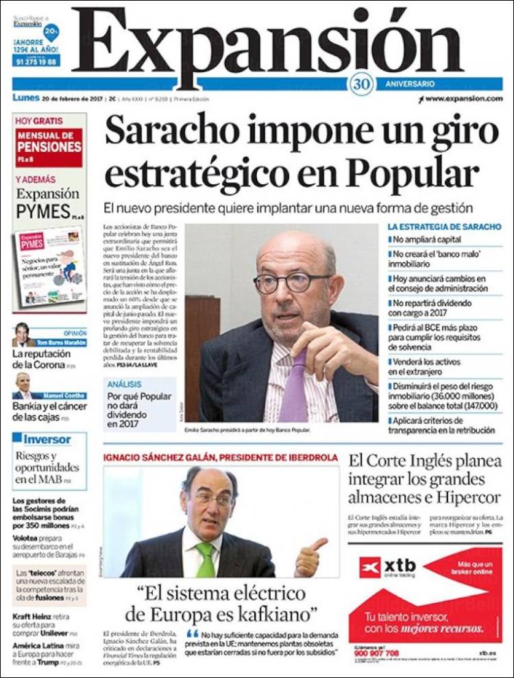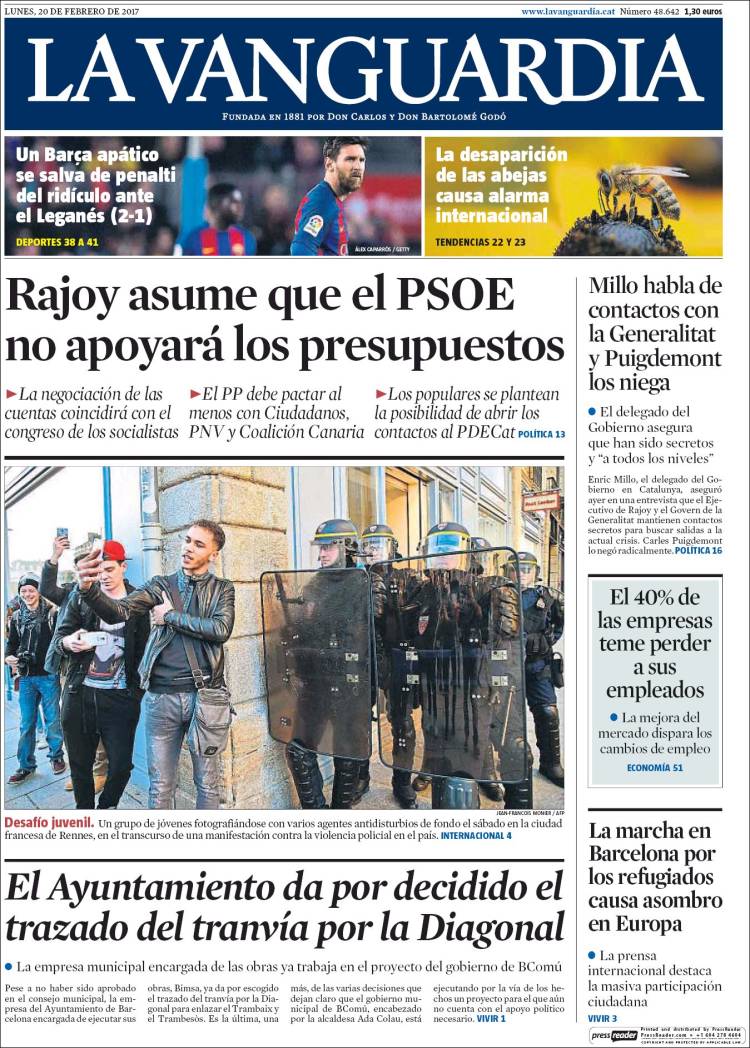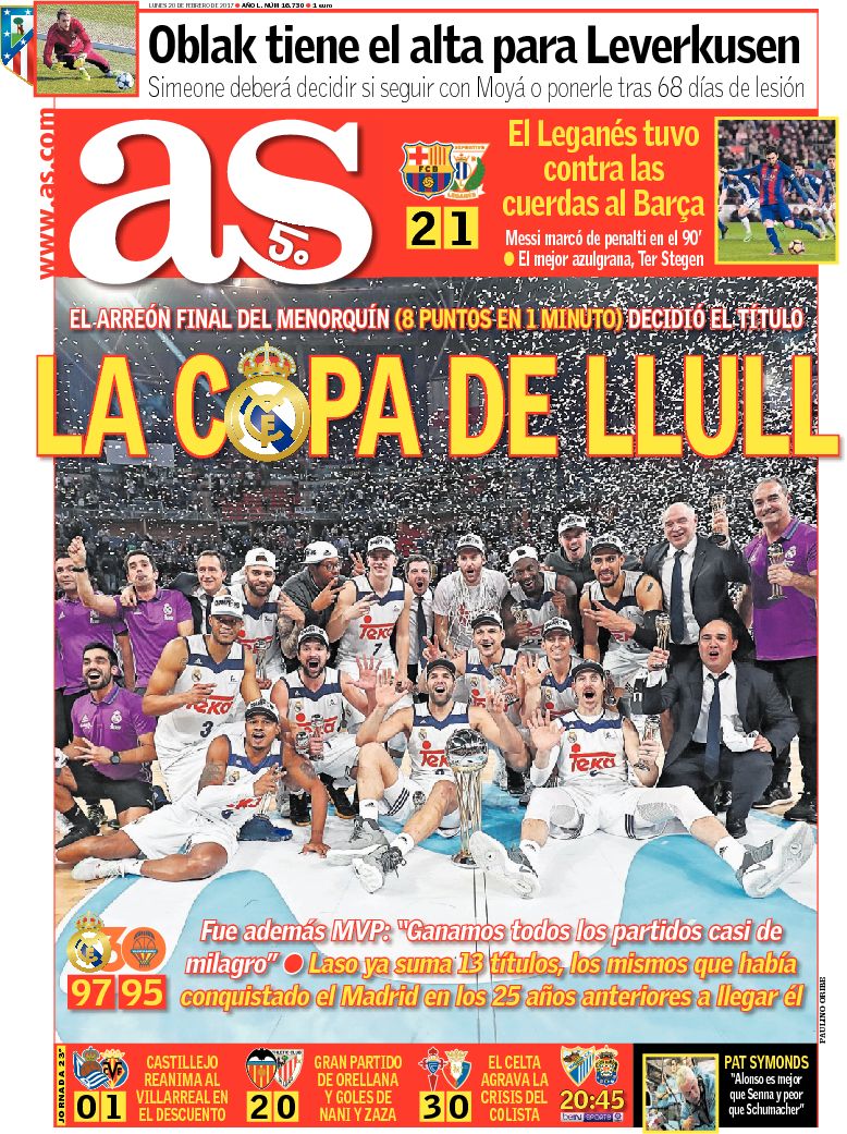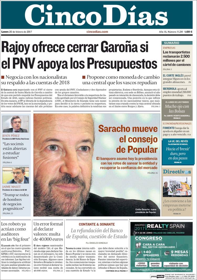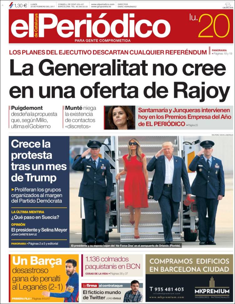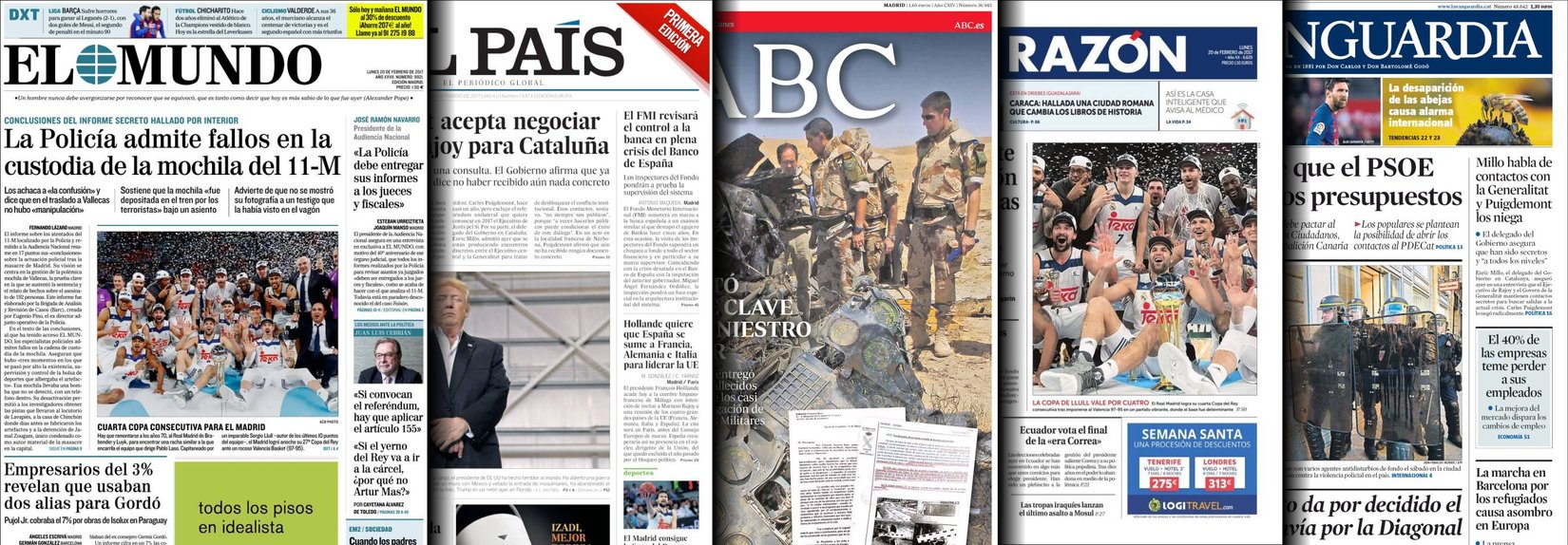Portadas de los diarios ABC, As, Cinco Días, El Periódico y La Vanguardia.