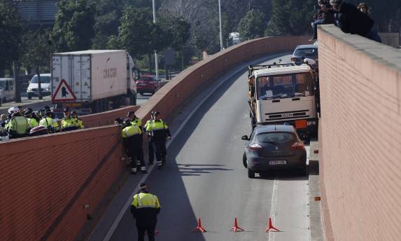 La Guardia Urbana de Barcelona y los Mossos d'Esquadra han detenido a tiros al conductor de un camión de butano robado que circulaba en sentido contrario a gran velocidad.