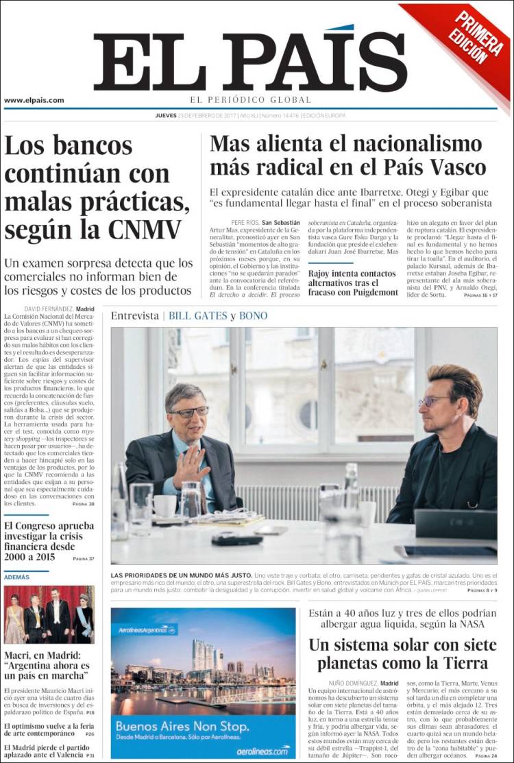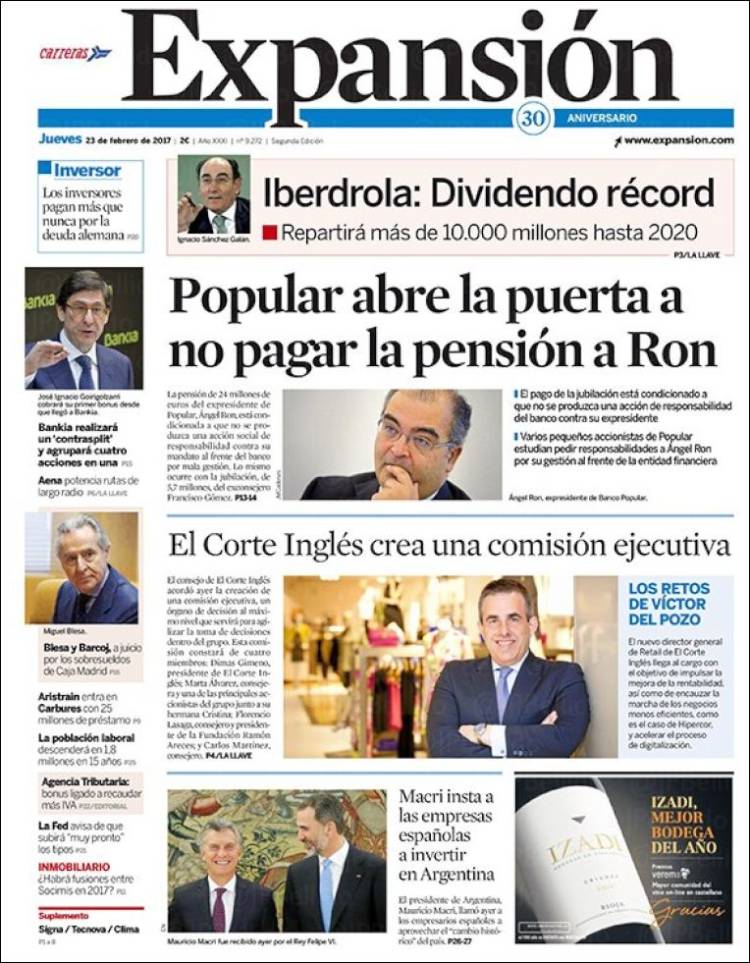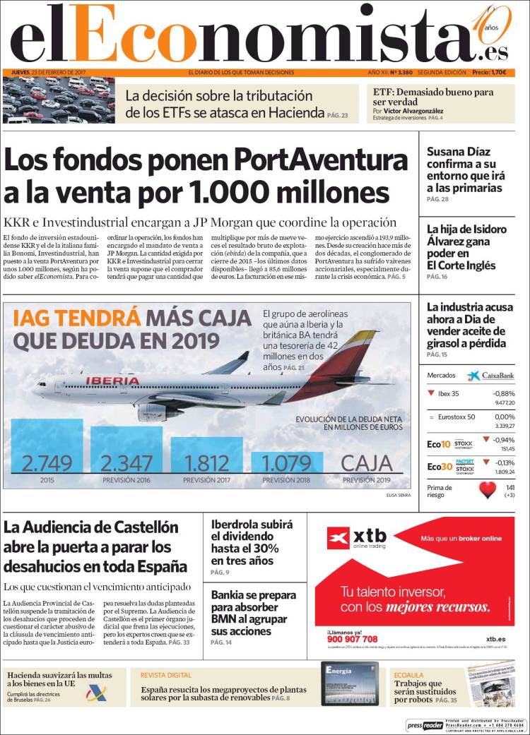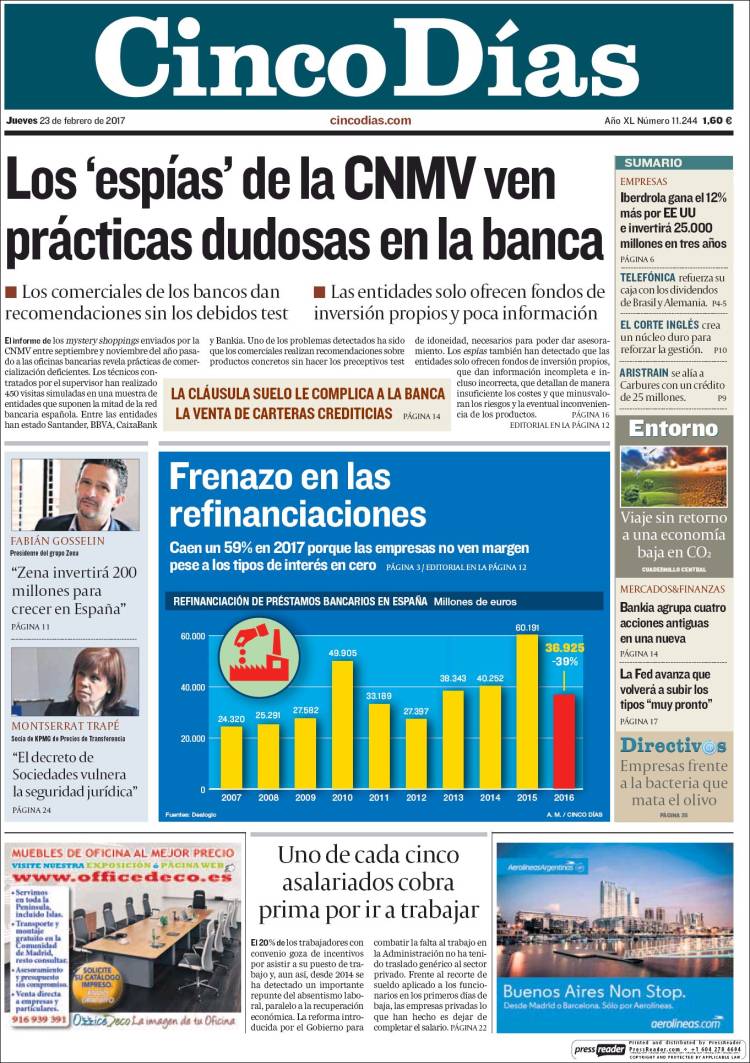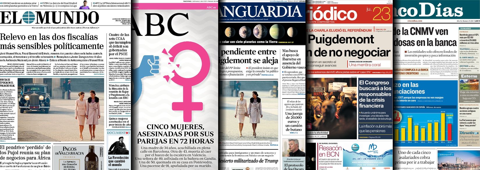 Portadas de los diarios ABC, As, Cinco Días, El Periódico y La Vanguardia.