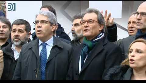 Homs llega al Tribunal Supremo flanqueado por Artur Mas y otros cien independentistas