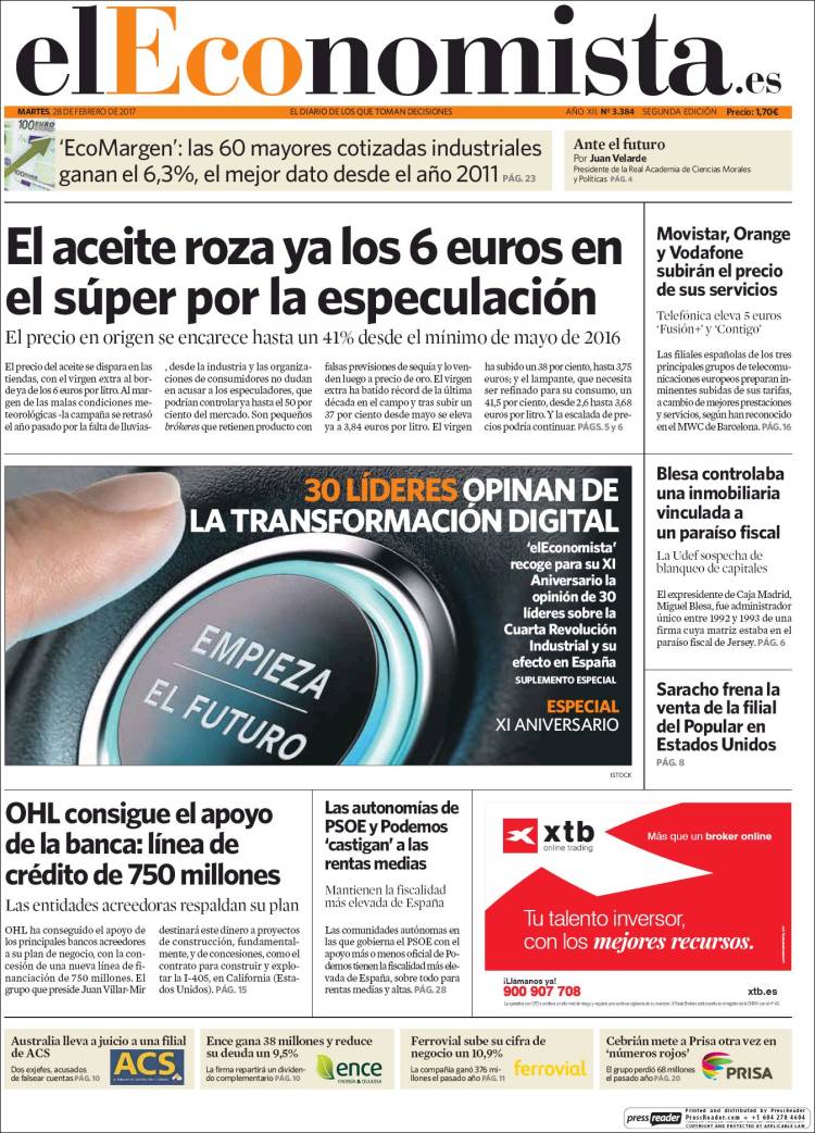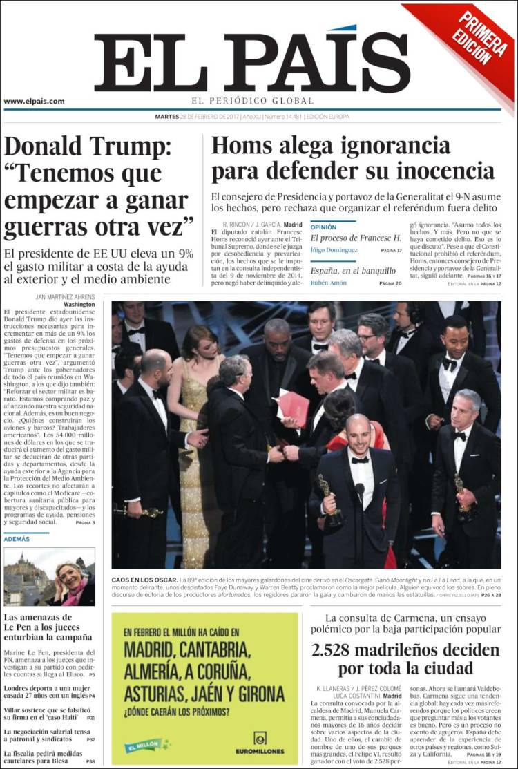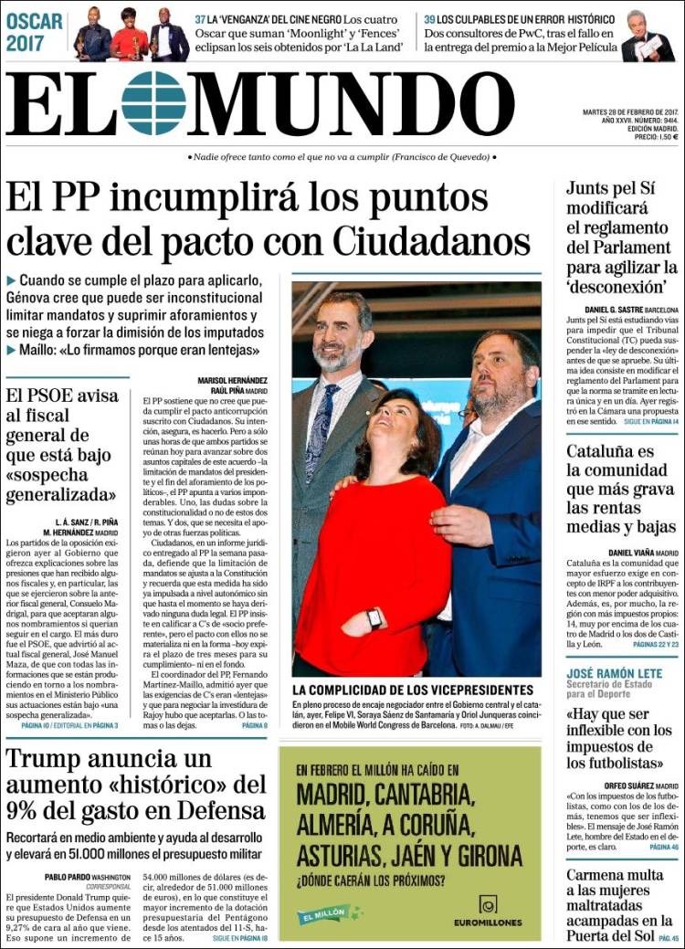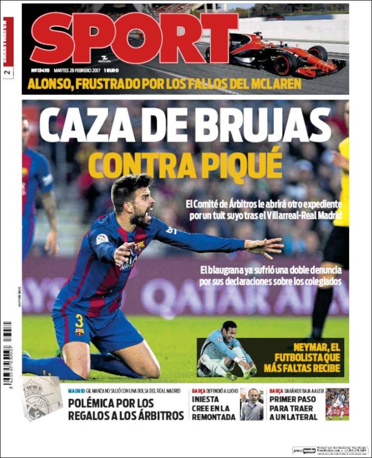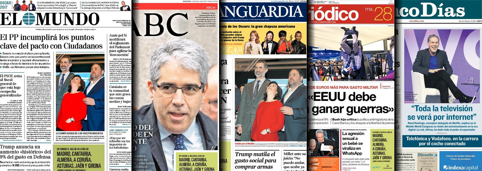 Portadas de los diarios El Mundo, El País, ABC, La Razón, La Vanguardia, El Periódico, Cinco Días, El Economista, As, Mundo Deportivo y Sport.