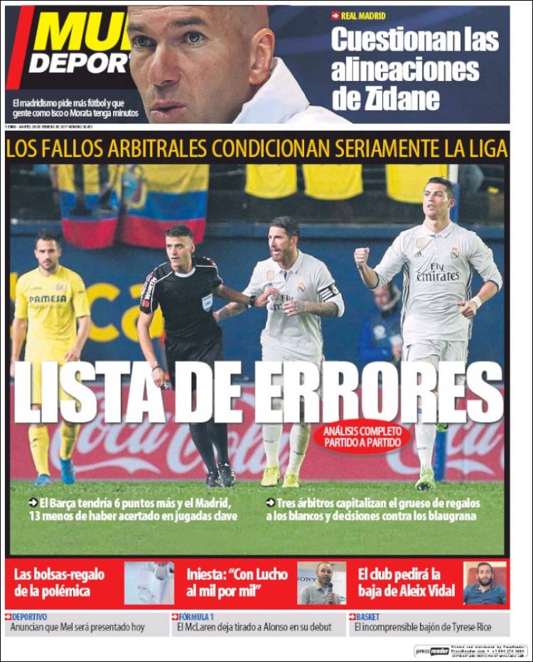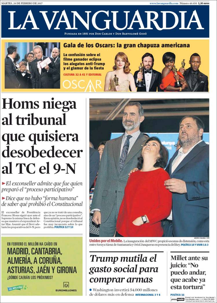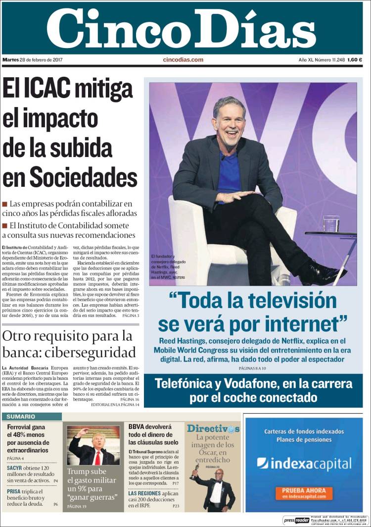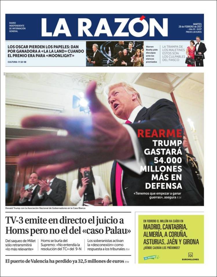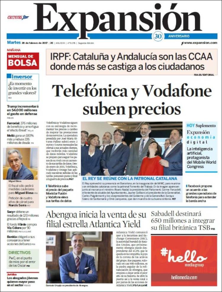 Portadas de los diarios El Mundo, El País, ABC, La Razón, La Vanguardia, El Periódico, Cinco Días, El Economista, As, Mundo Deportivo y Sport.