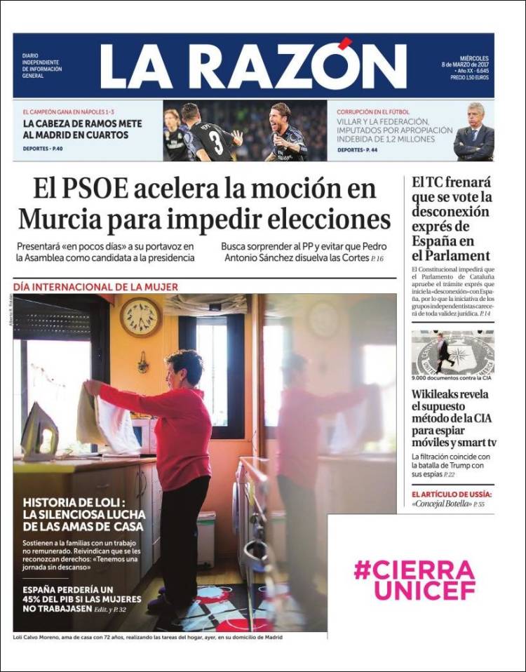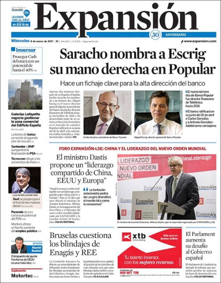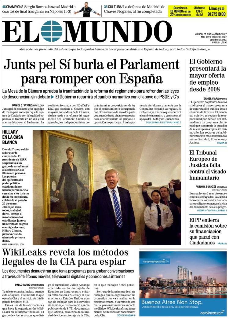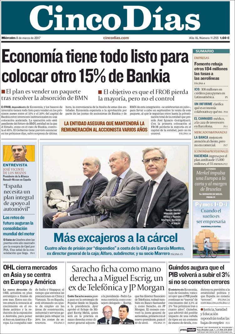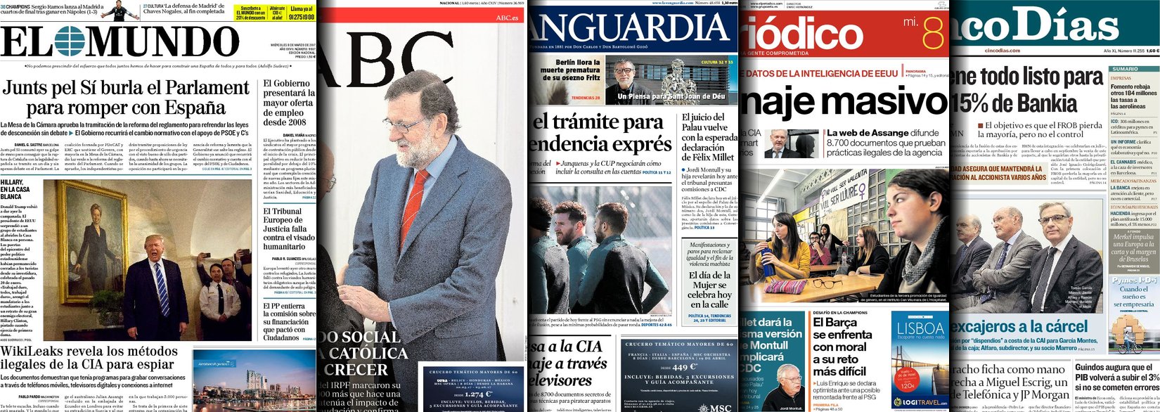 Portadas de los diarios El Mundo, El País, ABC, La Razón, La Vanguardia, El Periódico, Cinco Días, Expansión, As, Mundo Deportivo y Sport.