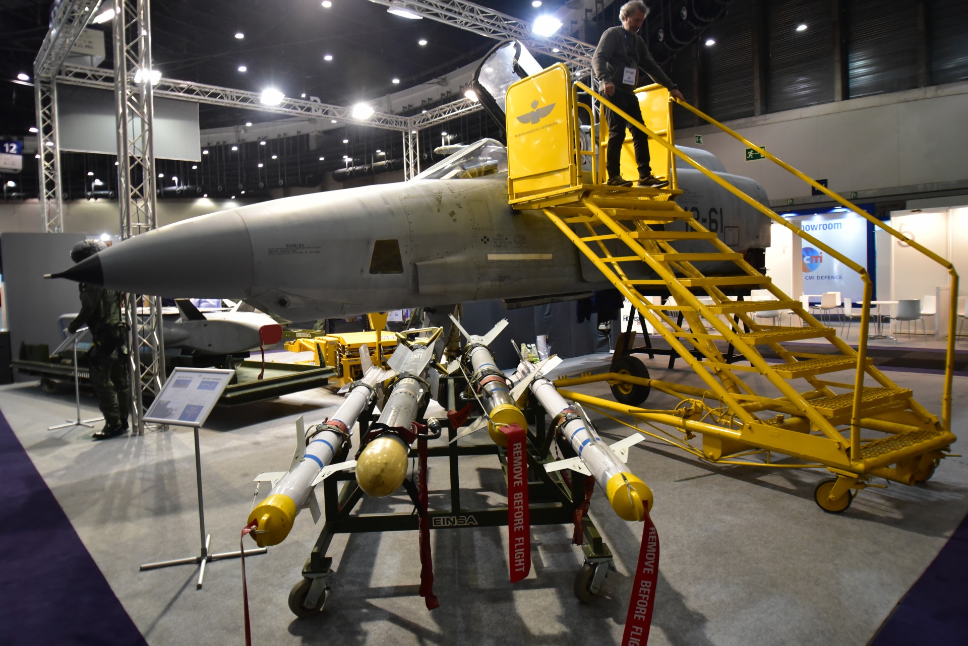 Además de las nuevas tecnologías para la defensa y la seguridad, en Homsec también es posible ver un antiguo caza F-4 Phantom II del Ejército del Aire.