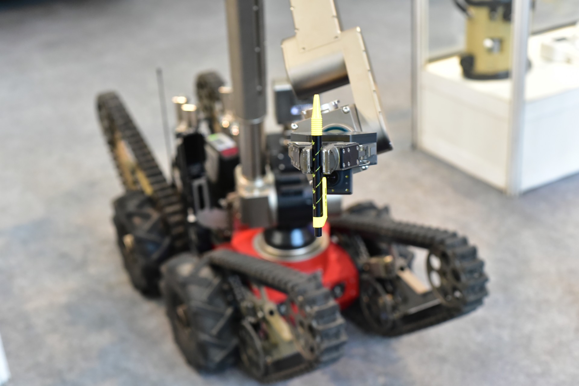 La zona de los artificieros de la UME muestra la destreza de uno de sus robots para sostener un bolígrafo.