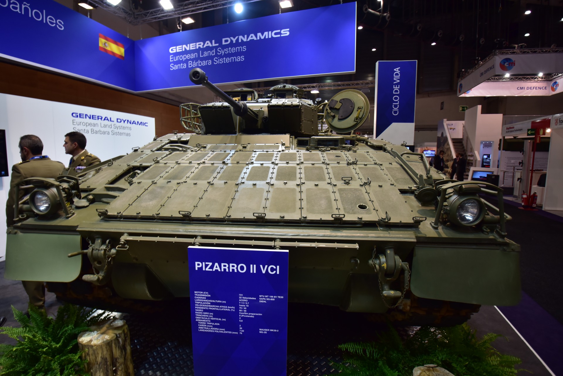 En la feria Homsec 2017, que se celebra durante esta semana en el Ifema en Madrid, se puede ver un blindado Pizarro II VCI.