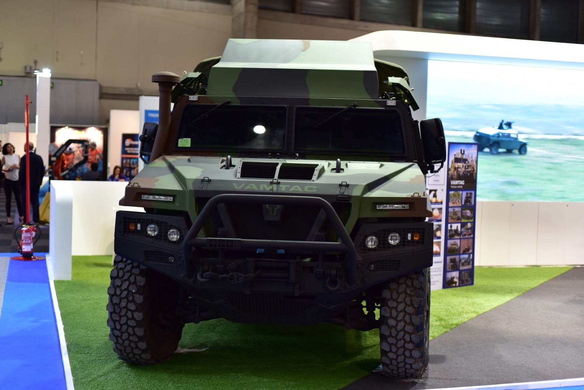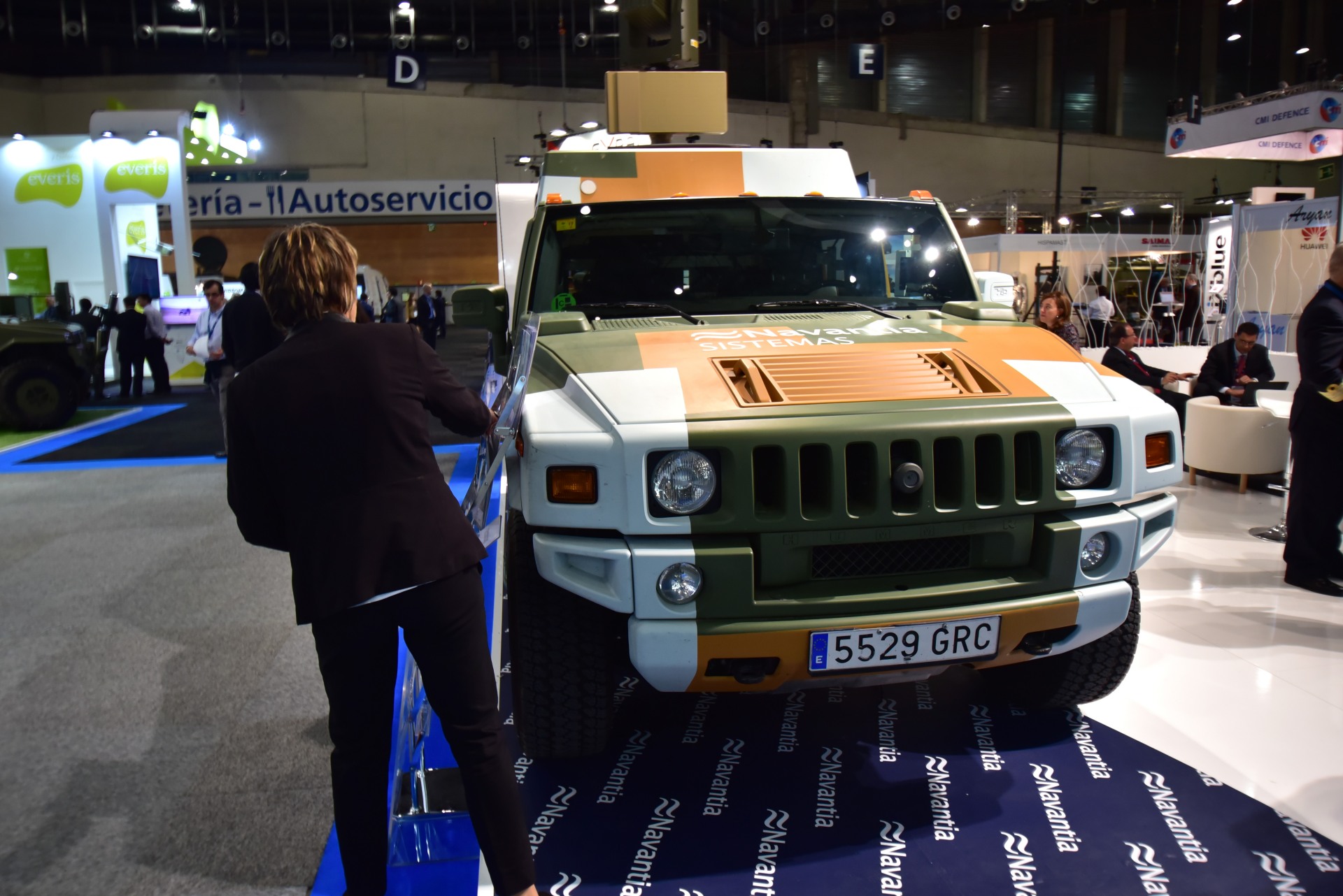 Un vehículo militar Hummer, como los usados por la Infantería de Marina española, en el stand de Navantia.