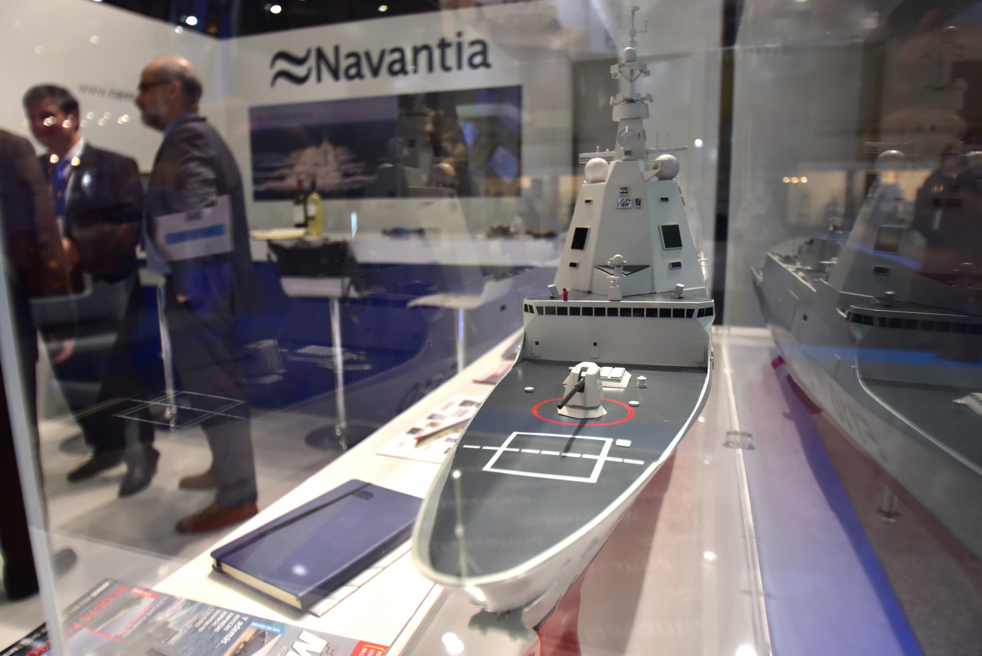 Maqueta del prototipo de fragata F110 que se puede ver en el stand de Navantia.