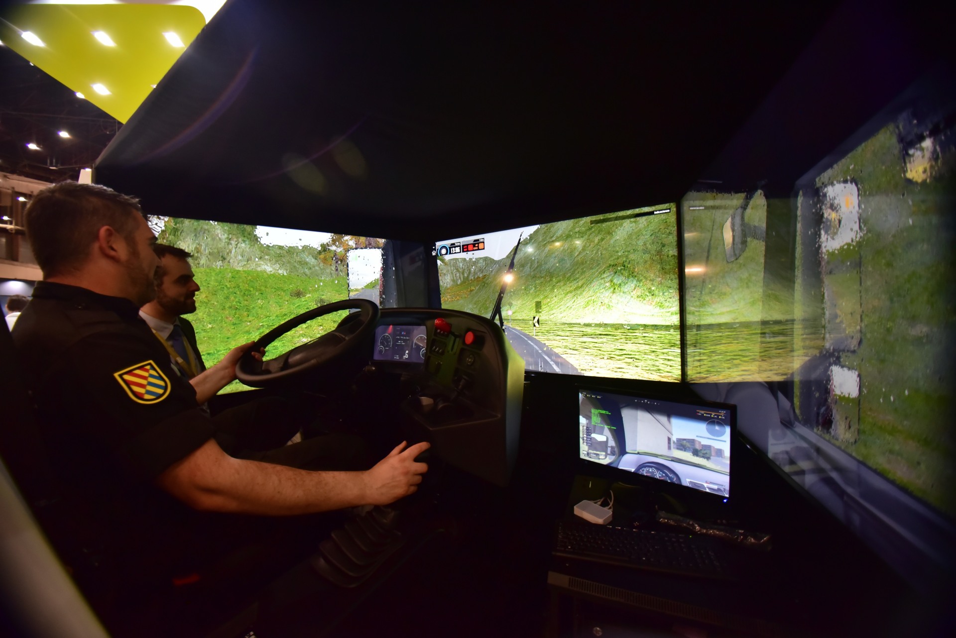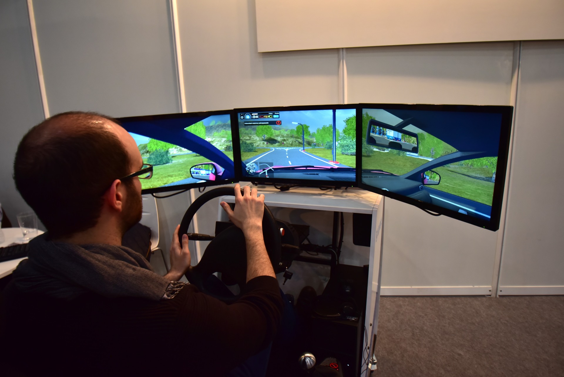 Un hombre disfruta de uno de los simuladores que se pueden ver en la feria Homsec 2017, que se celebra durante esta semana en Madrid
