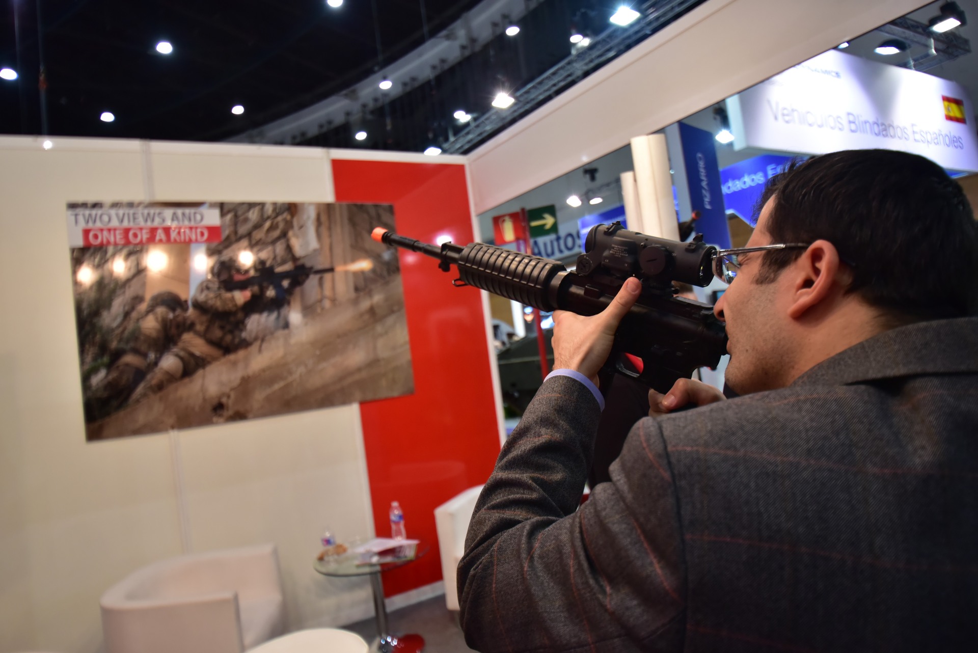 La empresa Raytheon muestra sus ópticas para fusiles de asalto.