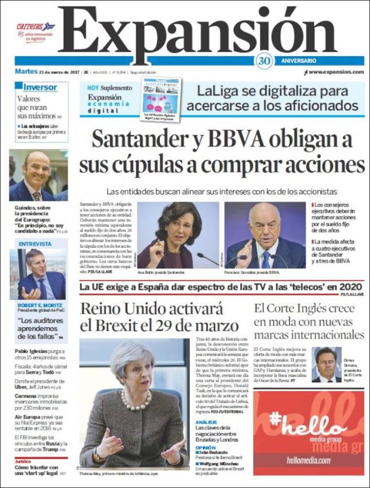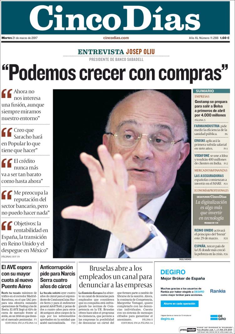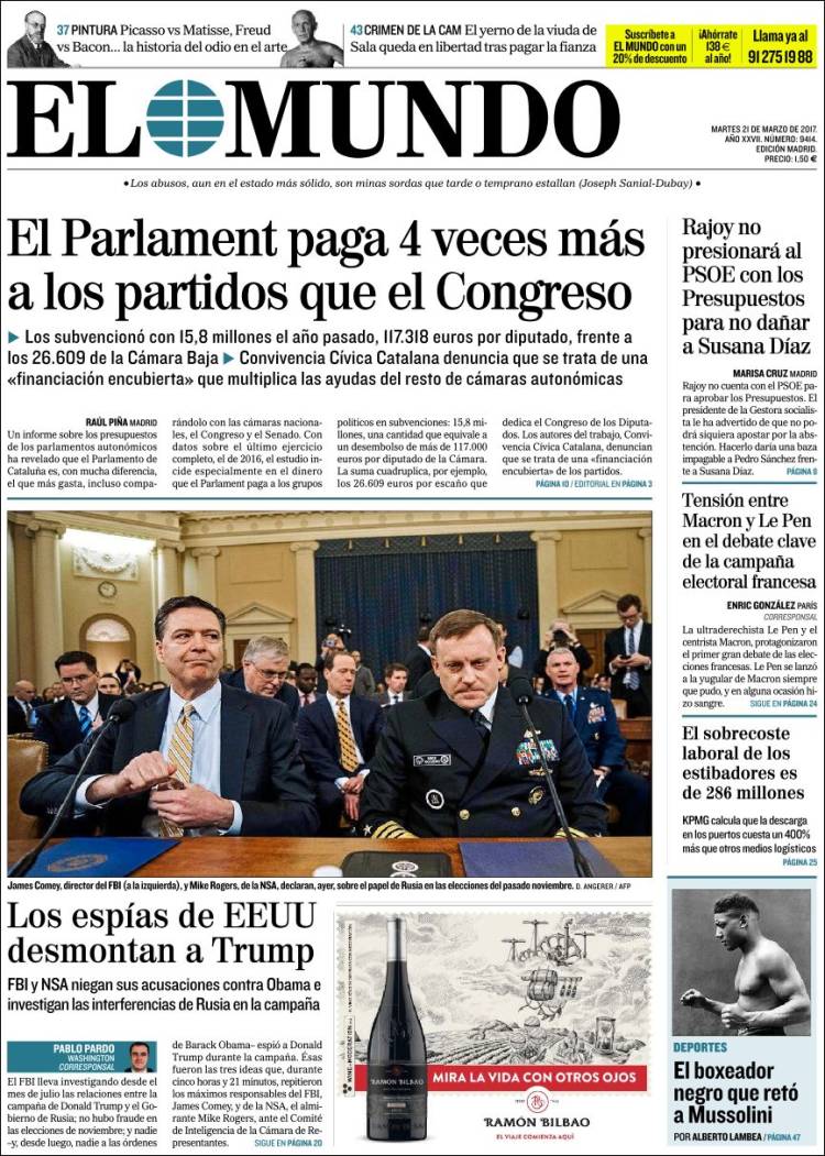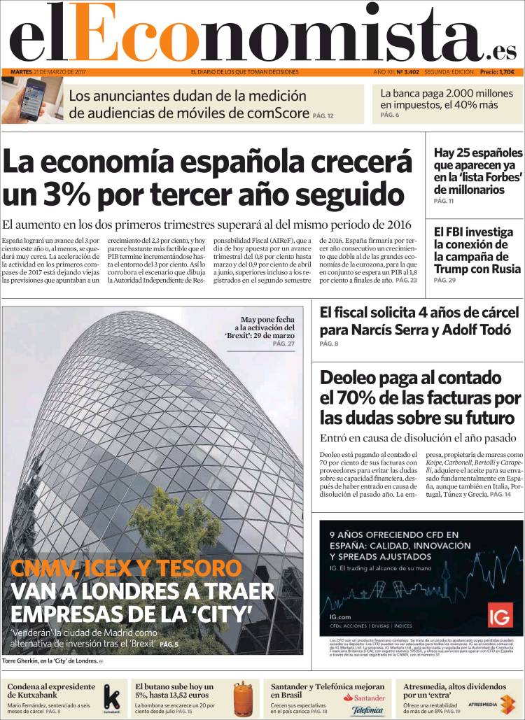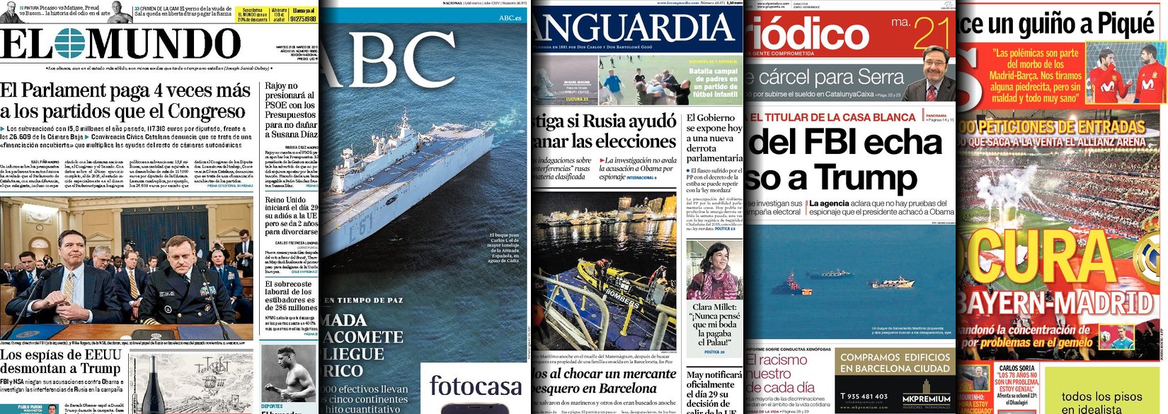 Portadas de los diarios El Mundo, El País, ABC, La Razón, La Vanguardia, El Periódico, Cinco Días, Expansión, El Economista, As, Mundo Deportivo y Sport.