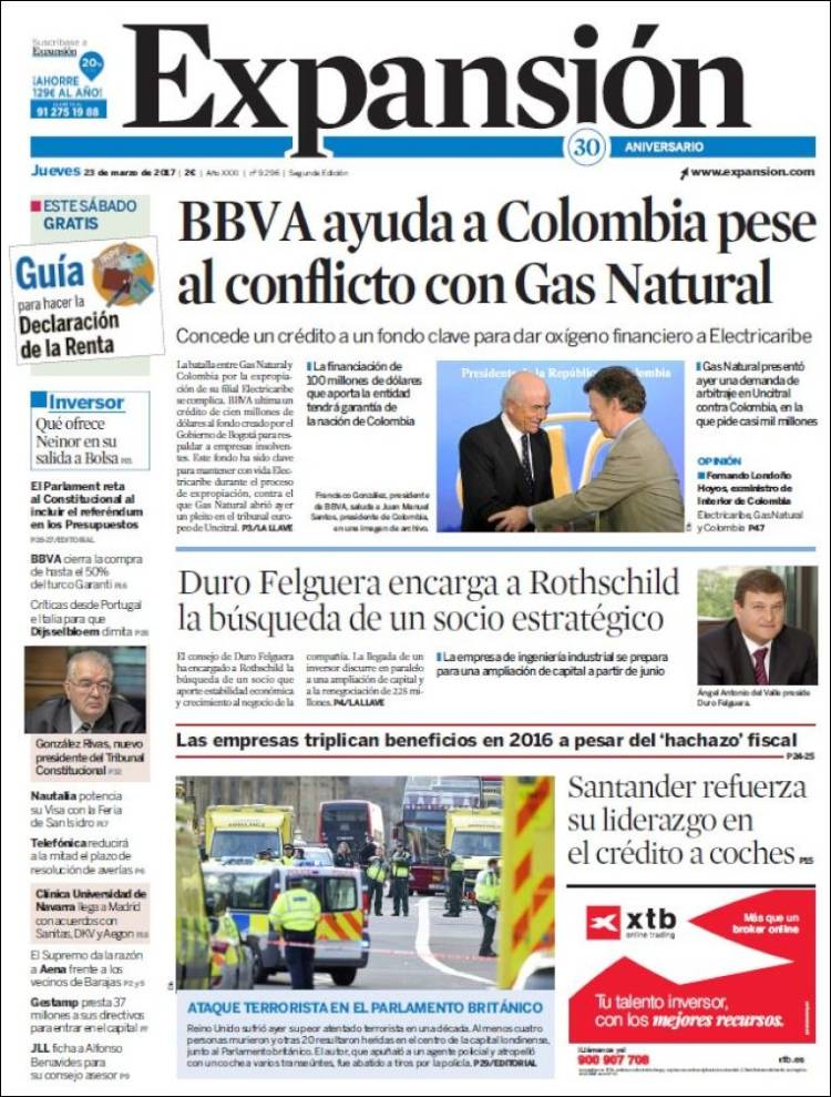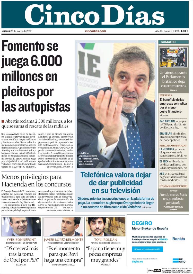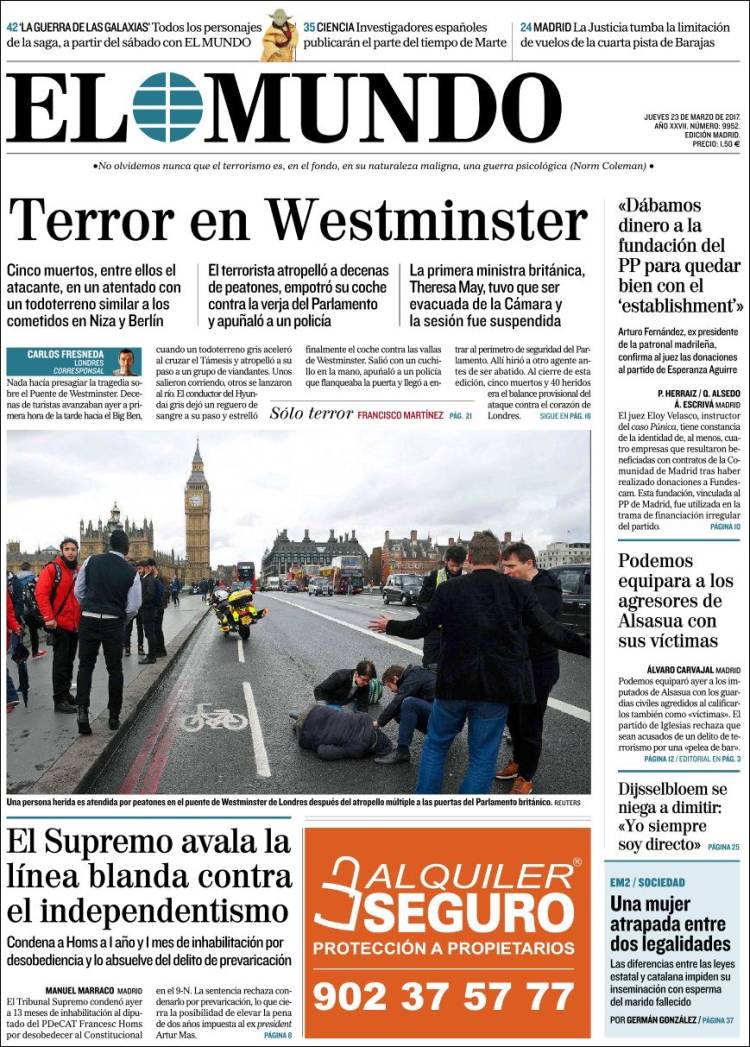 Portadas de los diarios El Mundo, El País, ABC, La Razón, La Vanguardia, El Periódico, Cinco Días, Expansión, As, Mundo Deportivo y Sport.