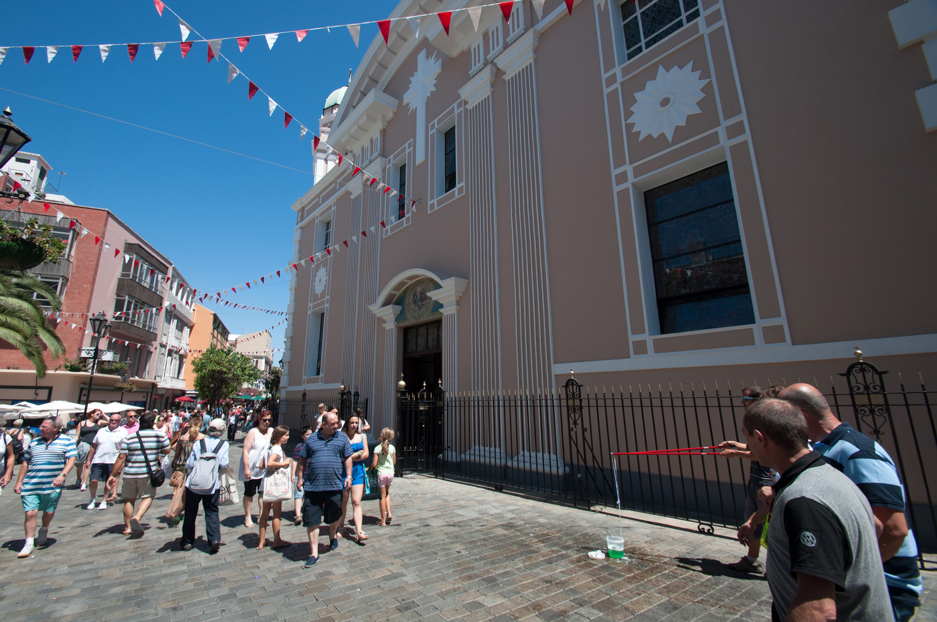Entrada a la catedral católica de Santa María la Coronada en Gibraltar.