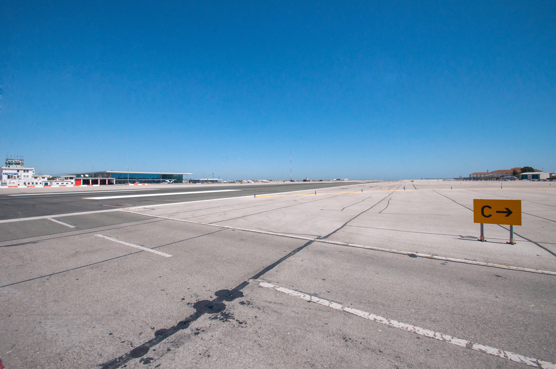 La pista del único aeropuerto construida en el istmo que une la colonia británica con España, a 500 metros del casco urbano.