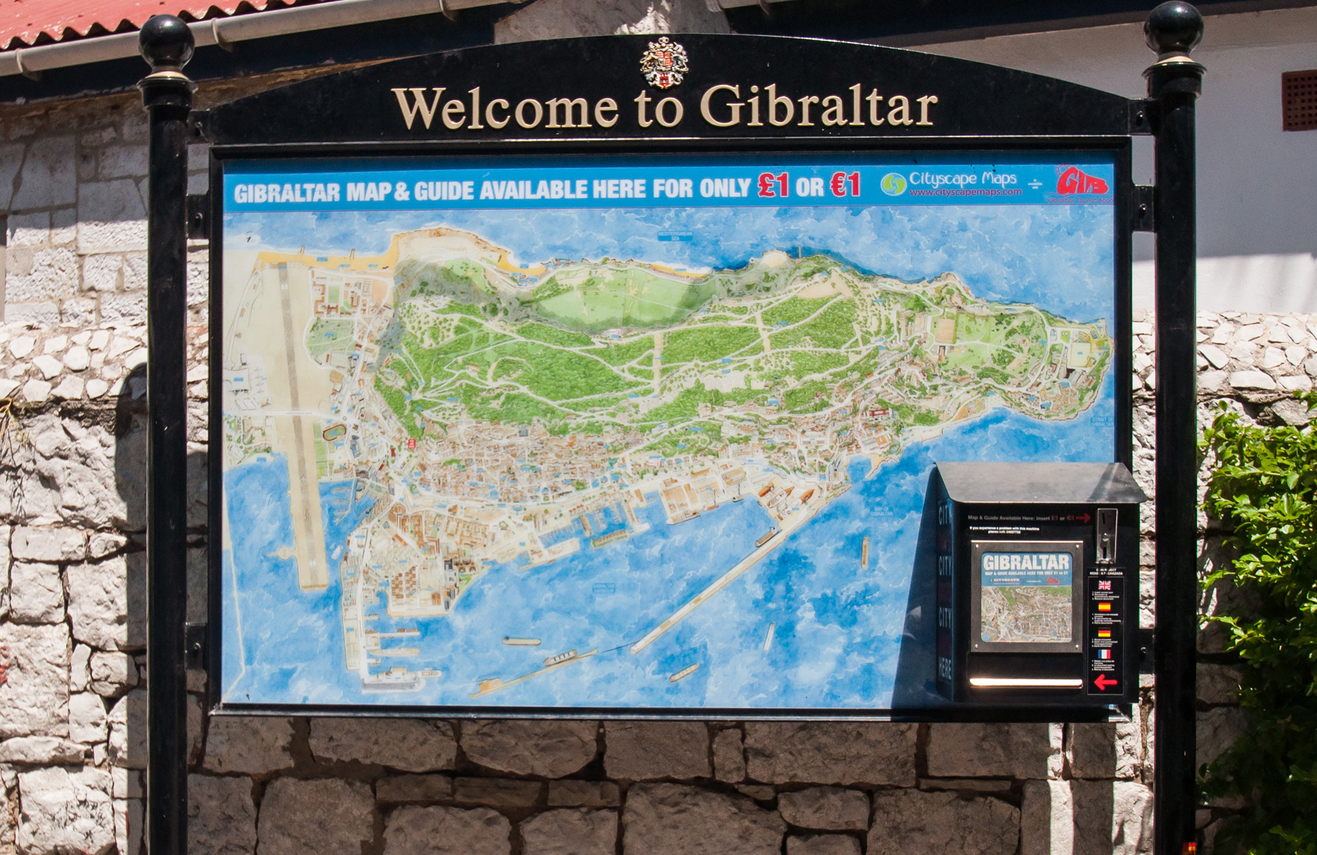 En la entrada al casco histórico de Gibraltar un enorme mapa del peñón da la bienvenida a los visitantes.