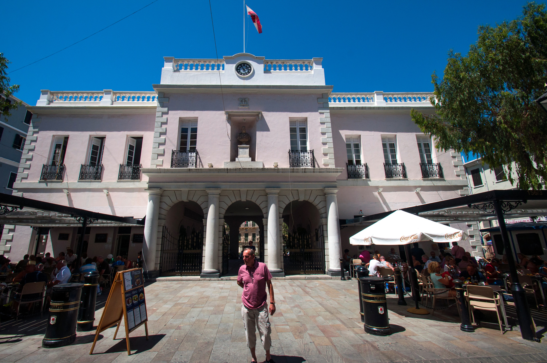 El edificio del Parlamento de Gibraltar, alberga en la planta baja un bar con terraza.