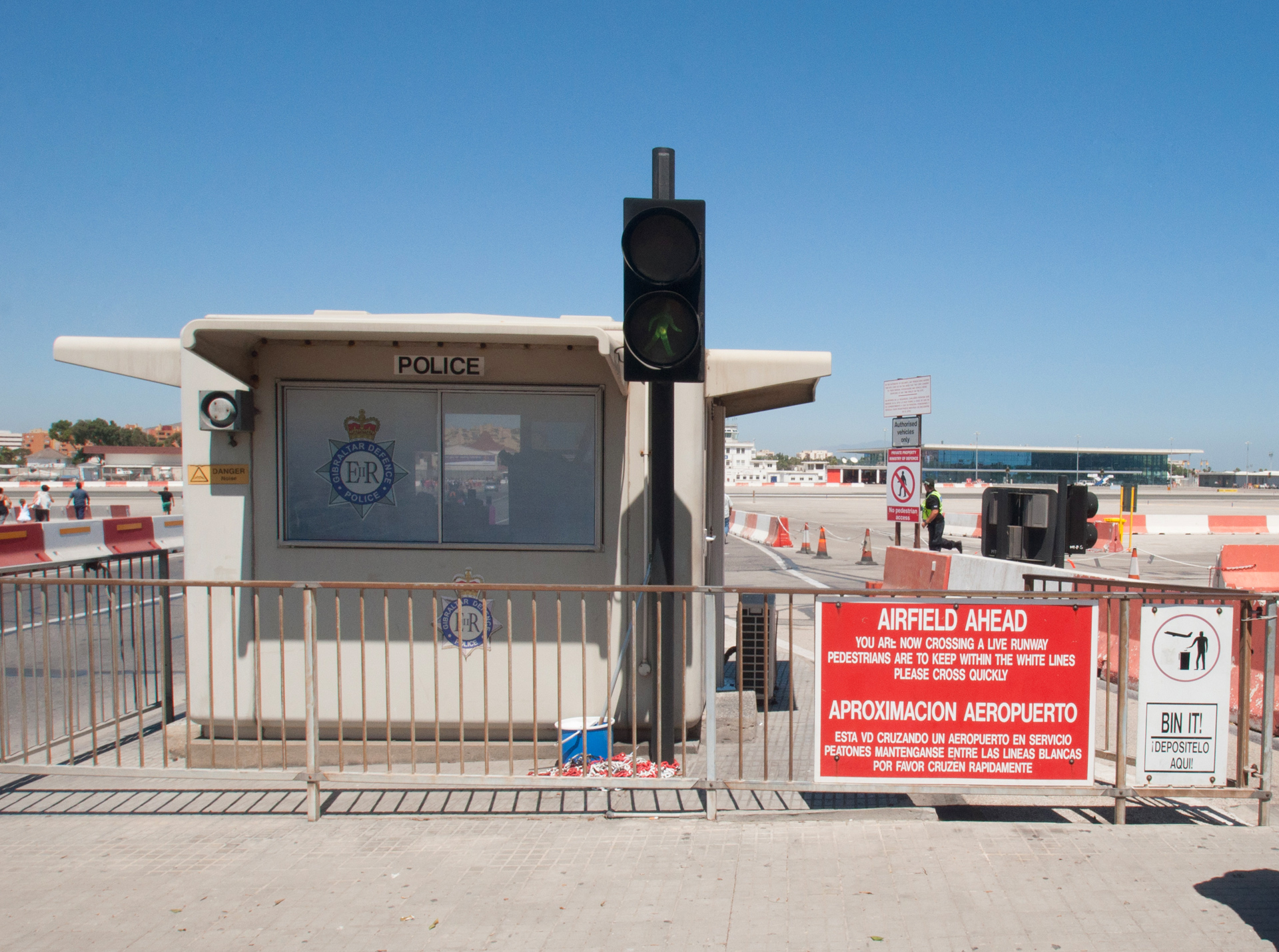 El único paso fronterizo se encuentra en la localidad gaditana de la Línea de la Concepción. Según el Ministerio de Exteriores: "España ha solicitado reiteradamente al Reino Unido entablar negociaciones, en cumplimiento de lo dispuesto por las Naciones Unidas, para llegar a una solución definitiva del contencioso de Gibraltar, única colonia existente en Europa".