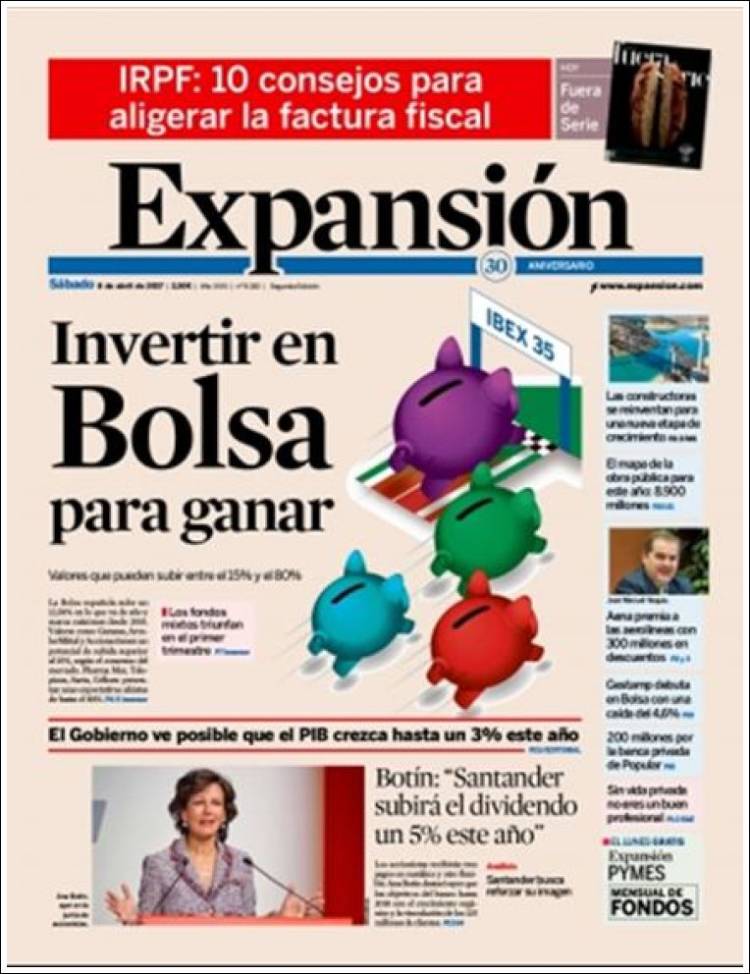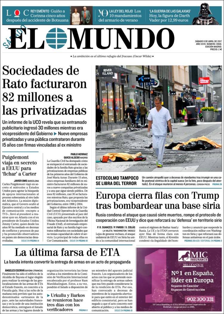 Portadas de los diarios El Mundo, El País, ABC, La Razón, La Vanguardia, El Periódico, Cinco Días, Expansión, As y Mundo Deportivo.