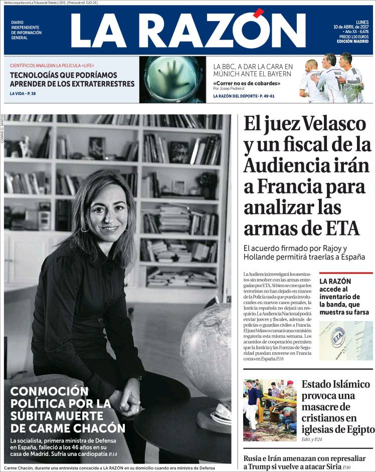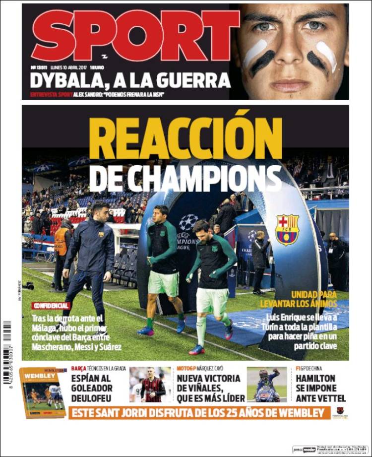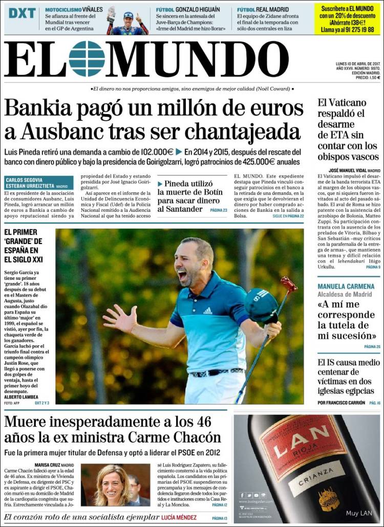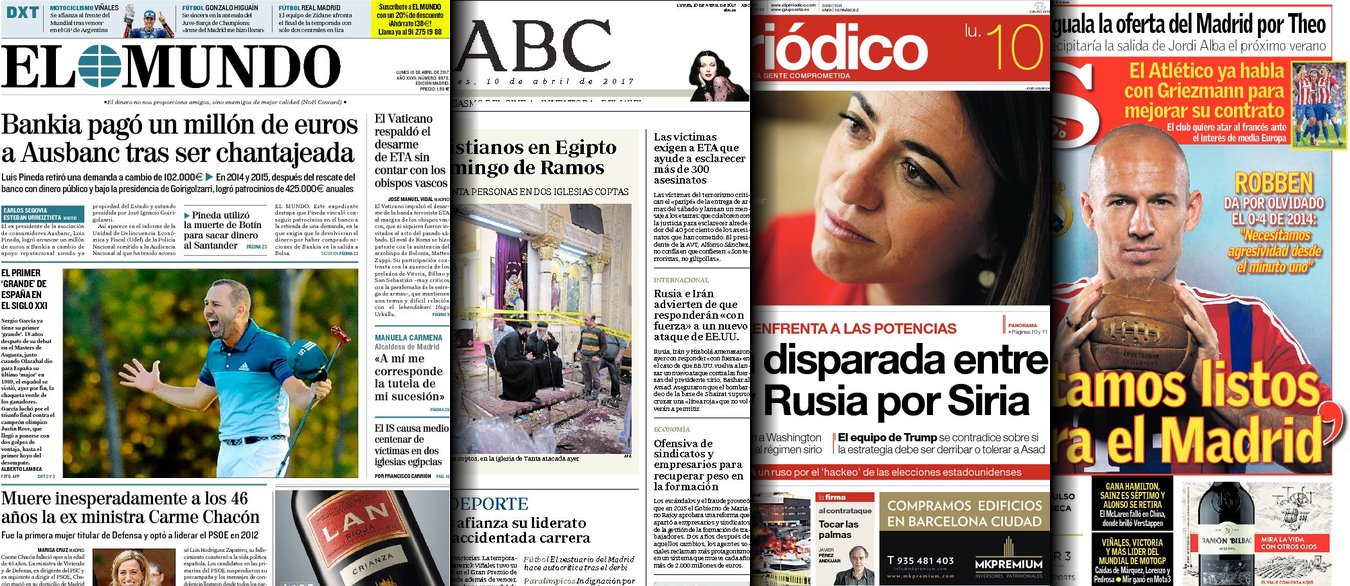 Portadas de los diarios El Mundo, El País, ABC, La Razón, La Vanguardia, El Periódico, Cinco Días, As, Mundo Deportivo y Sport.
