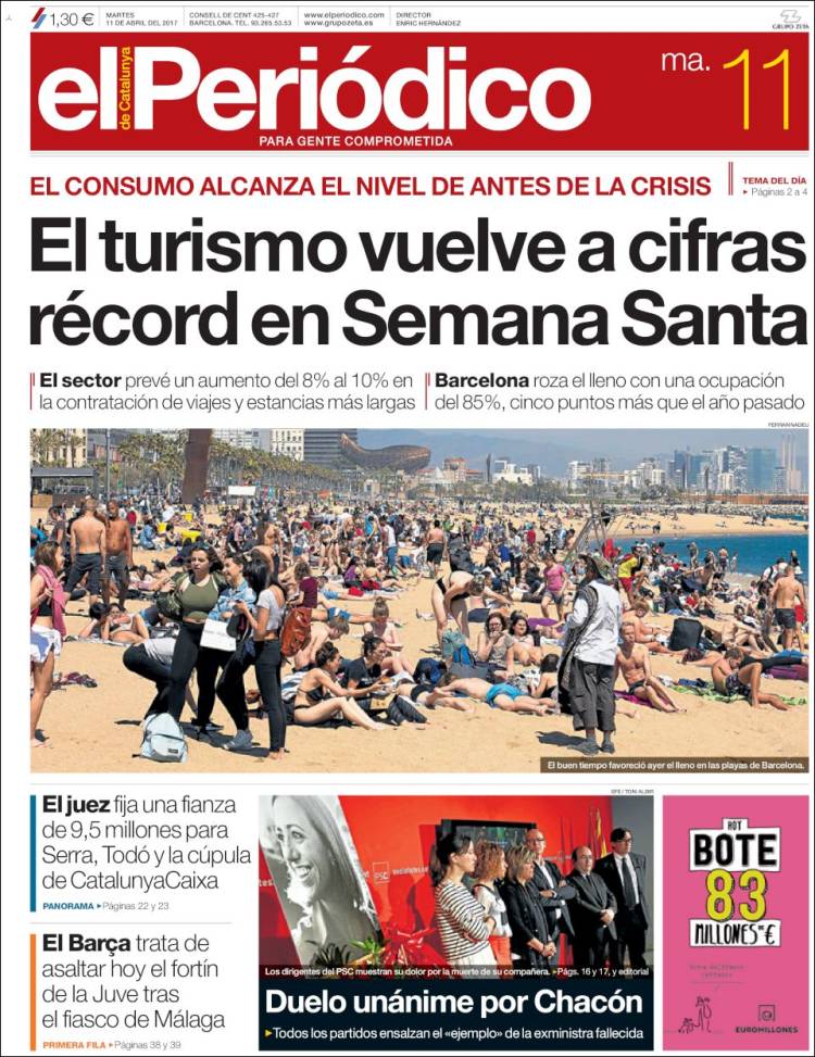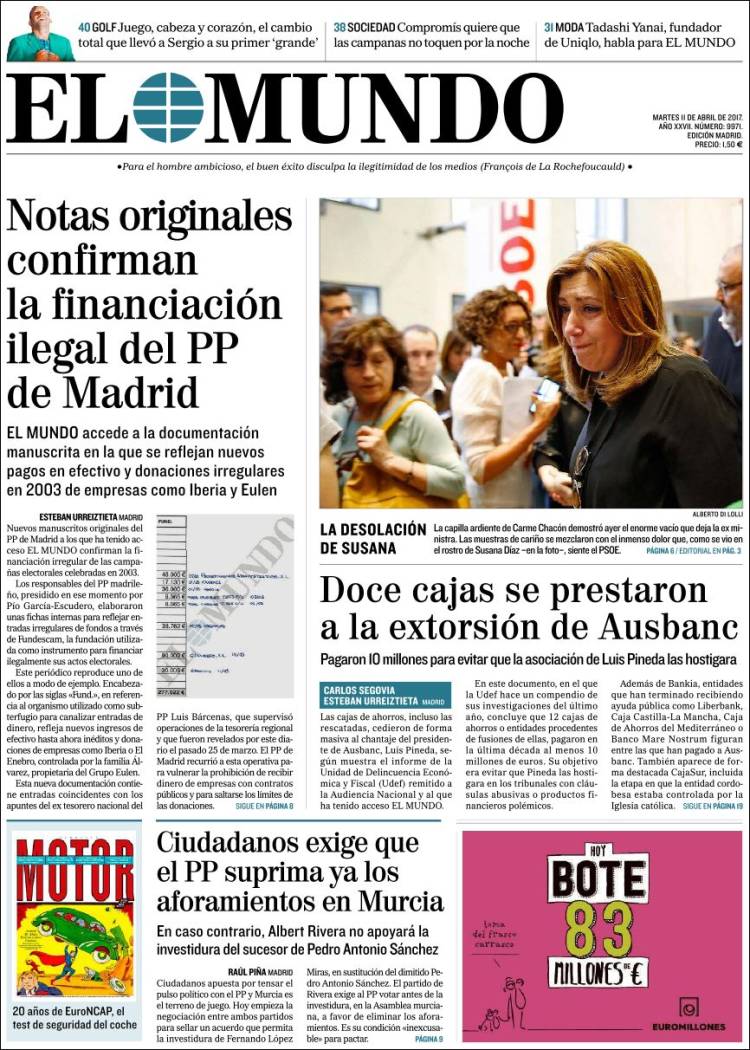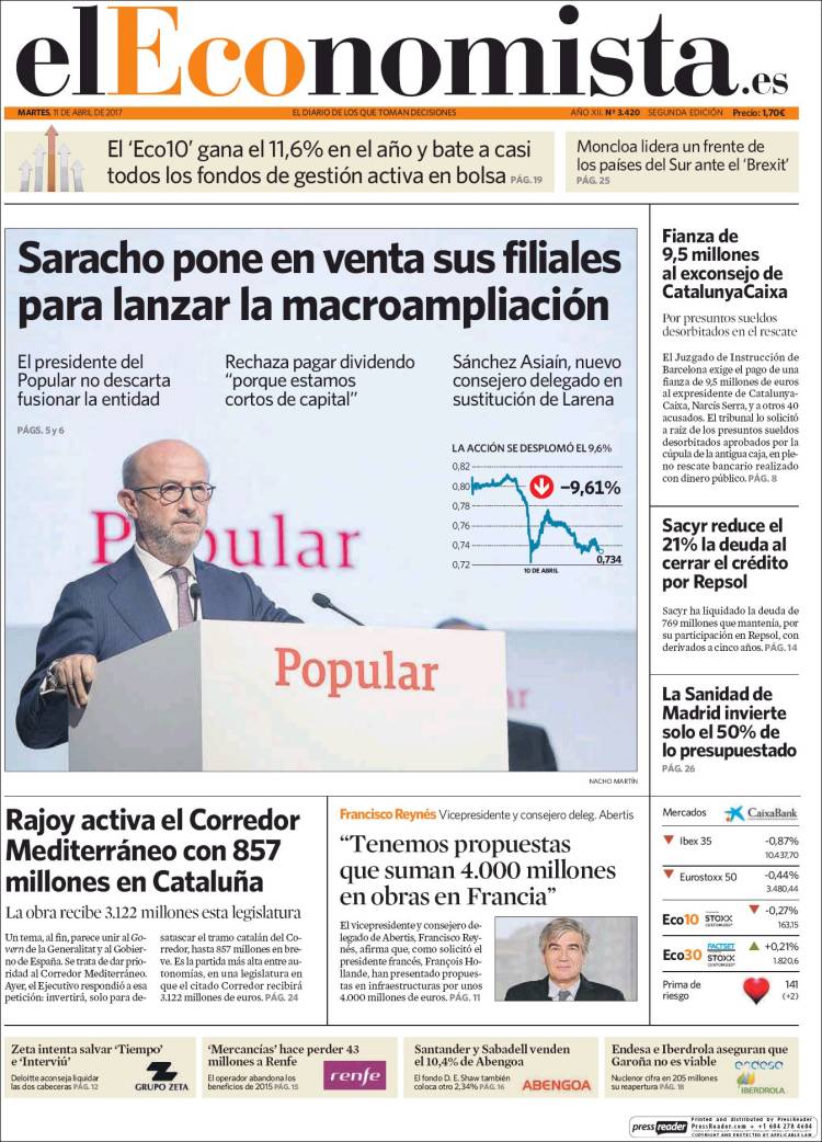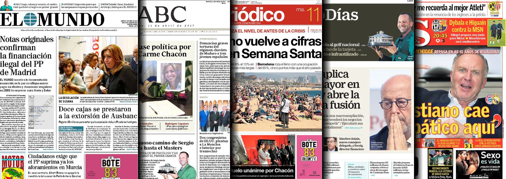 Portadas de los diarios El Mundo, El País, ABC, La Razón, La Vanguardia, El Periódico, Cinco Días, El Economista, Expansión, Marca, As, Mundo Deportivo y Sport.