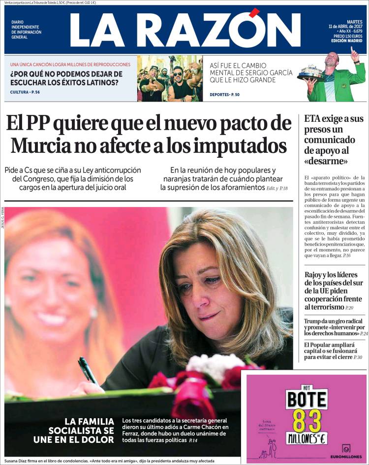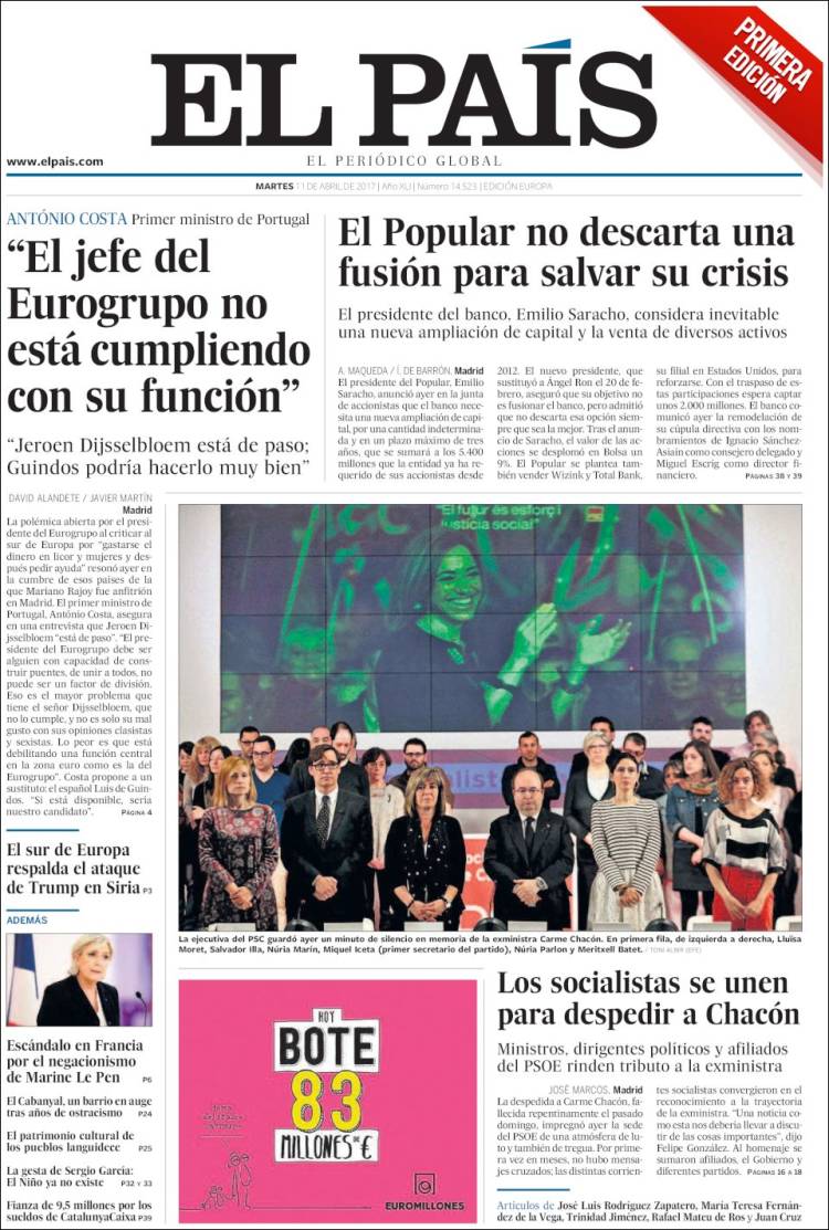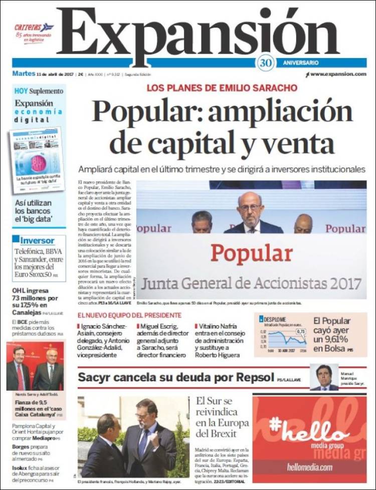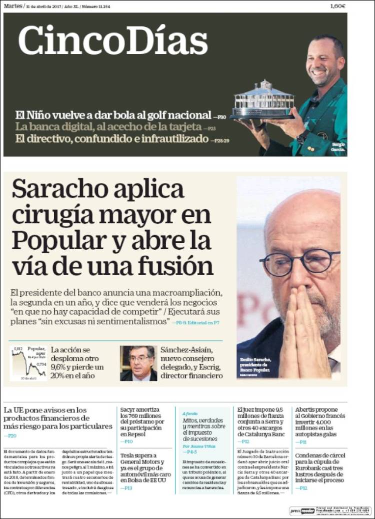 Portadas de los diarios El Mundo, El País, ABC, La Razón, La Vanguardia, El Periódico, Cinco Días, El Economista, Expansión, Marca, As, Mundo Deportivo y Sport.