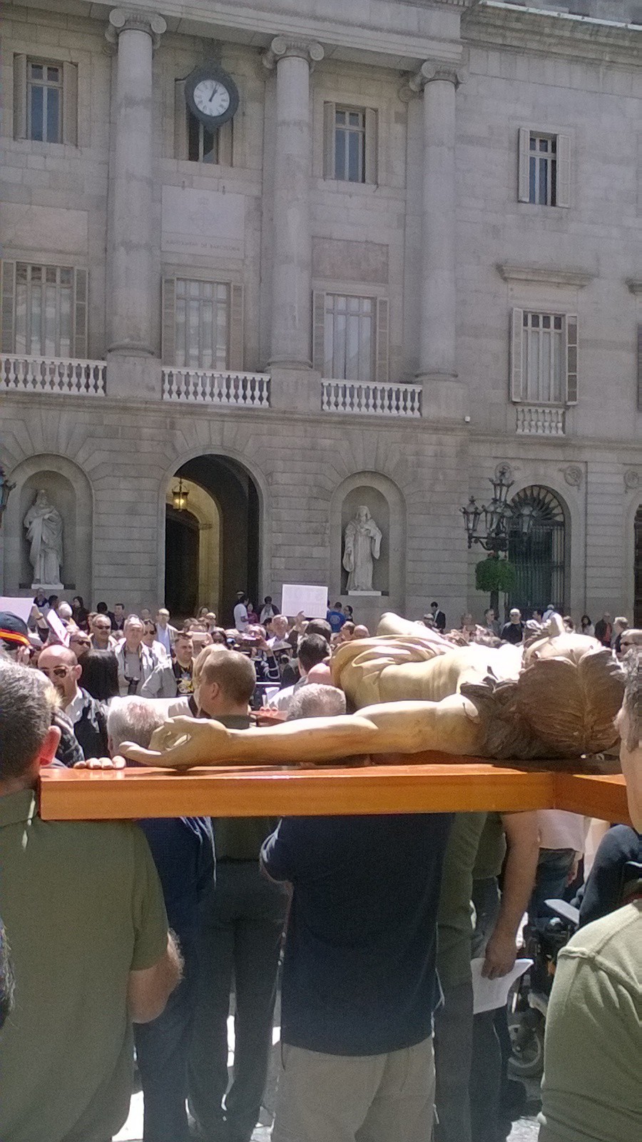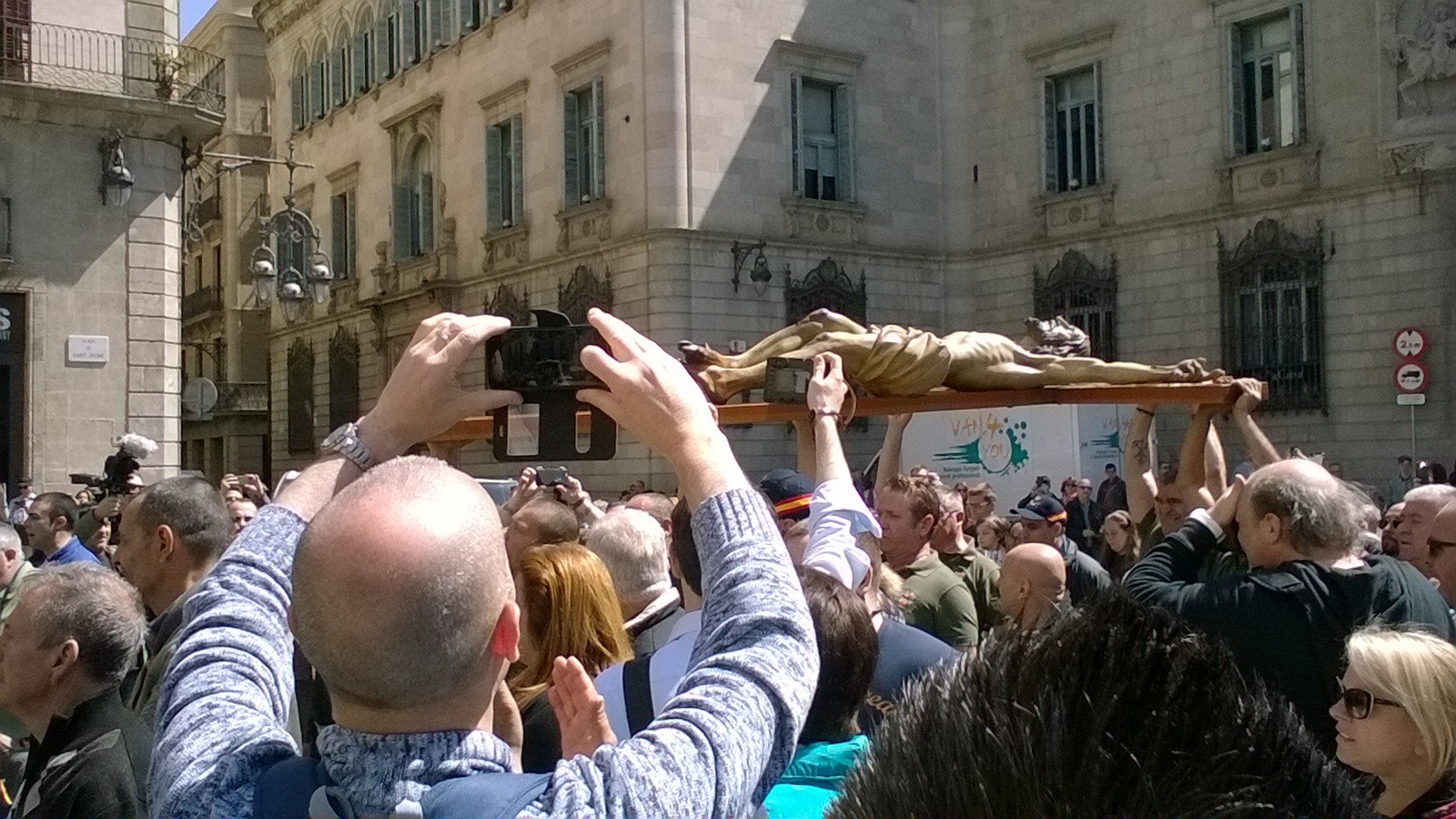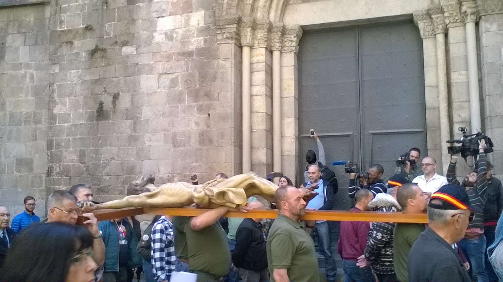 Legionarios han portado el Cristo de la Buena Muerte por el centro de Barcelona este 22 de abril. Les ha acompañado un millar de personas.