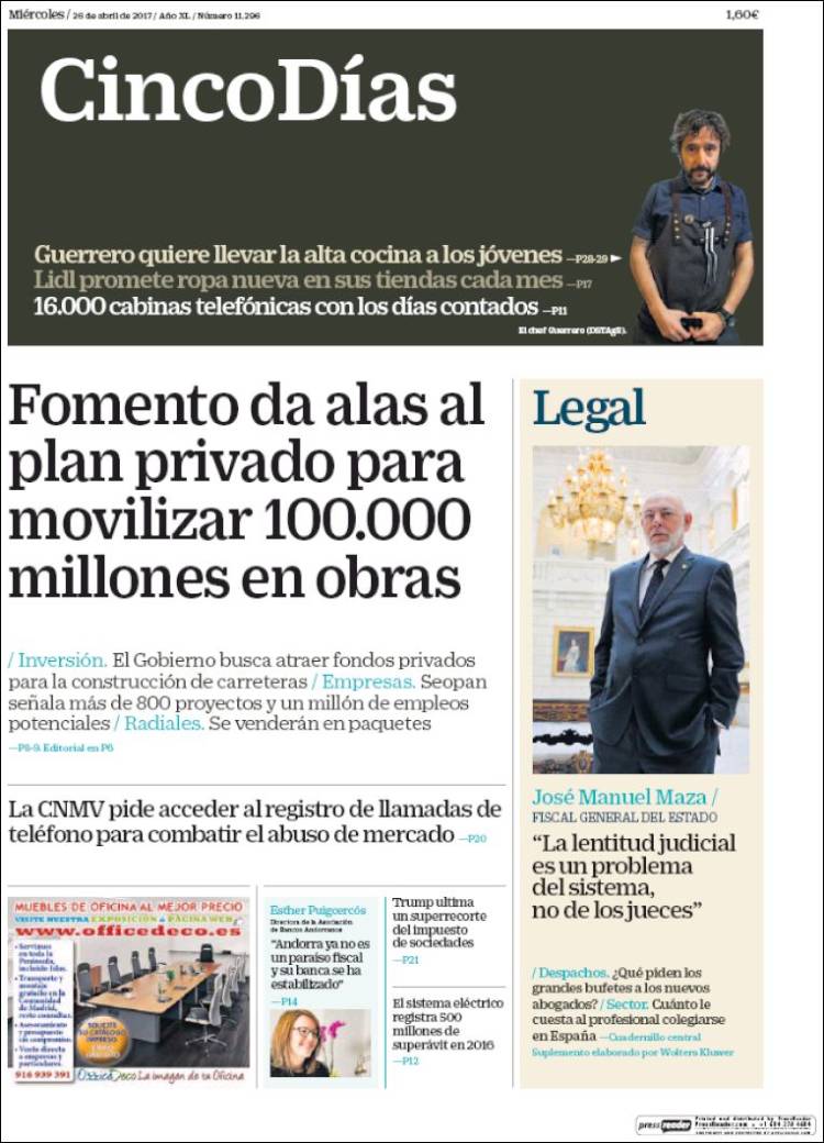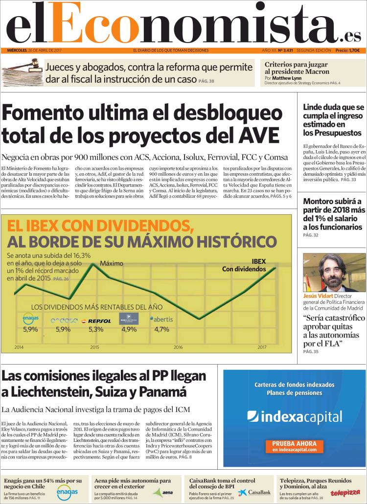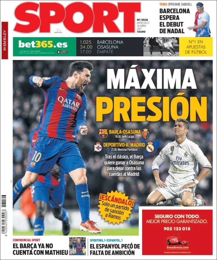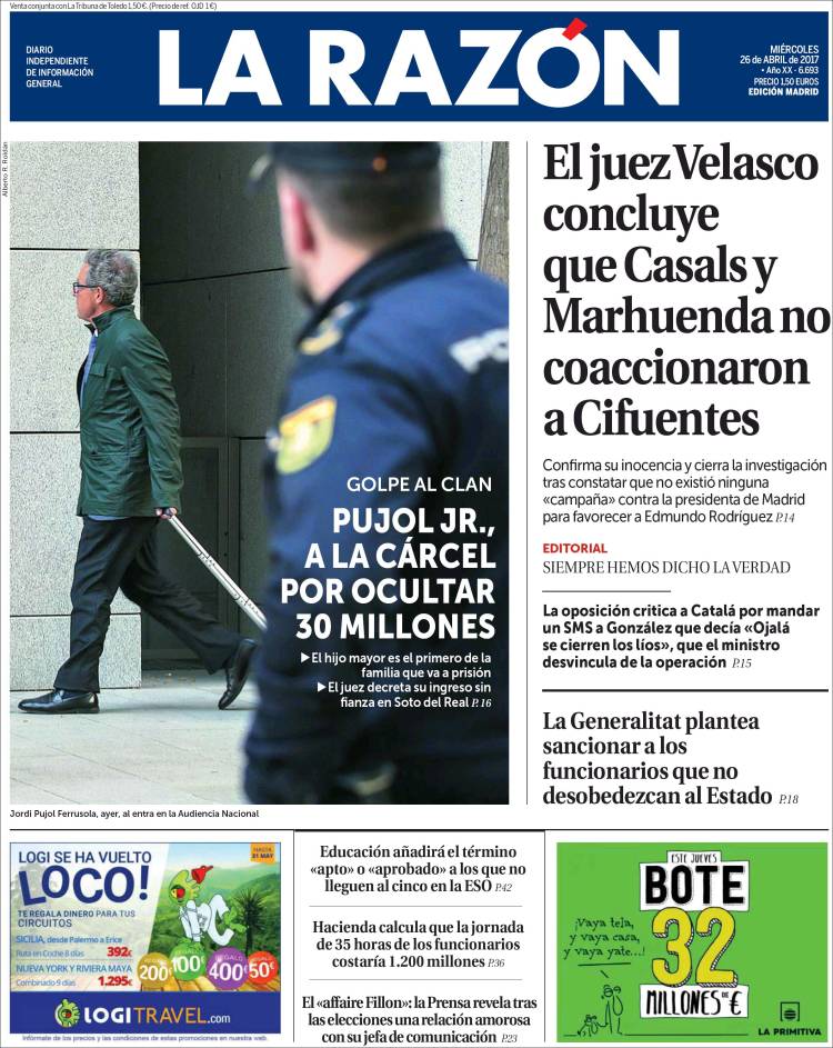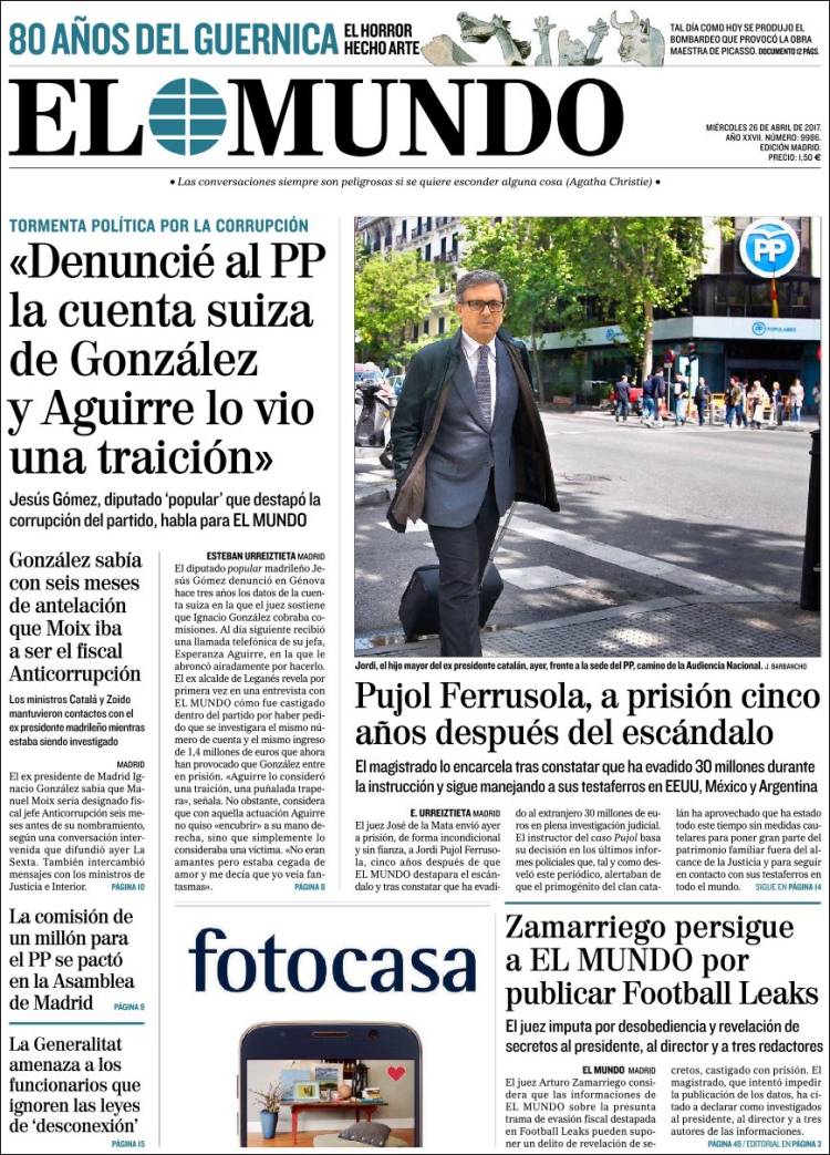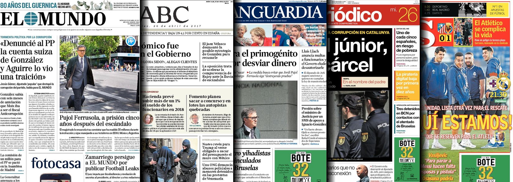 Portadas de los diarios El Mundo, El País, ABC, La Razón, La Vanguardia, El Periódico, Cinco Días, El Economista, Expansión, As, Mundo Deportivo y Sport.