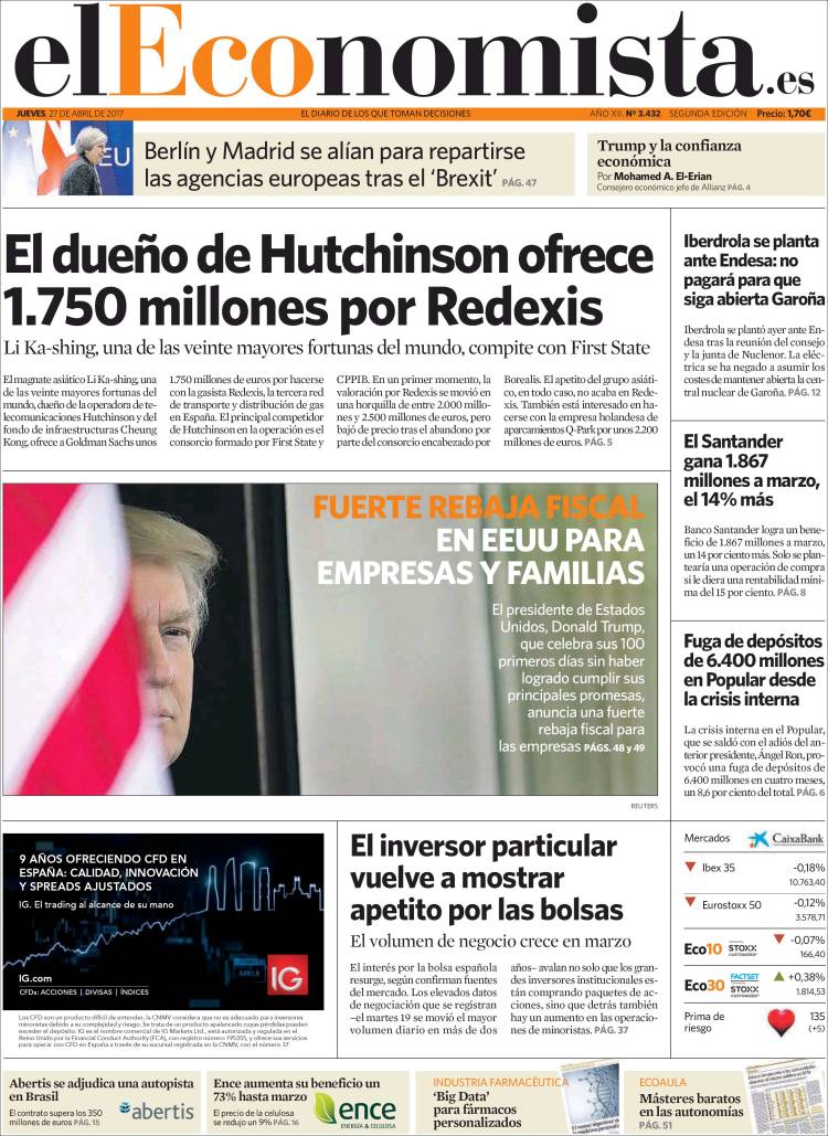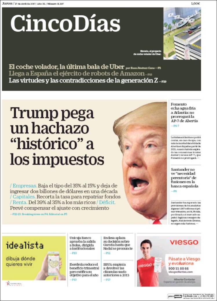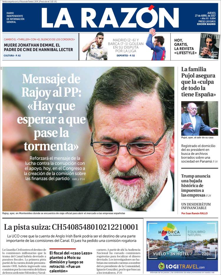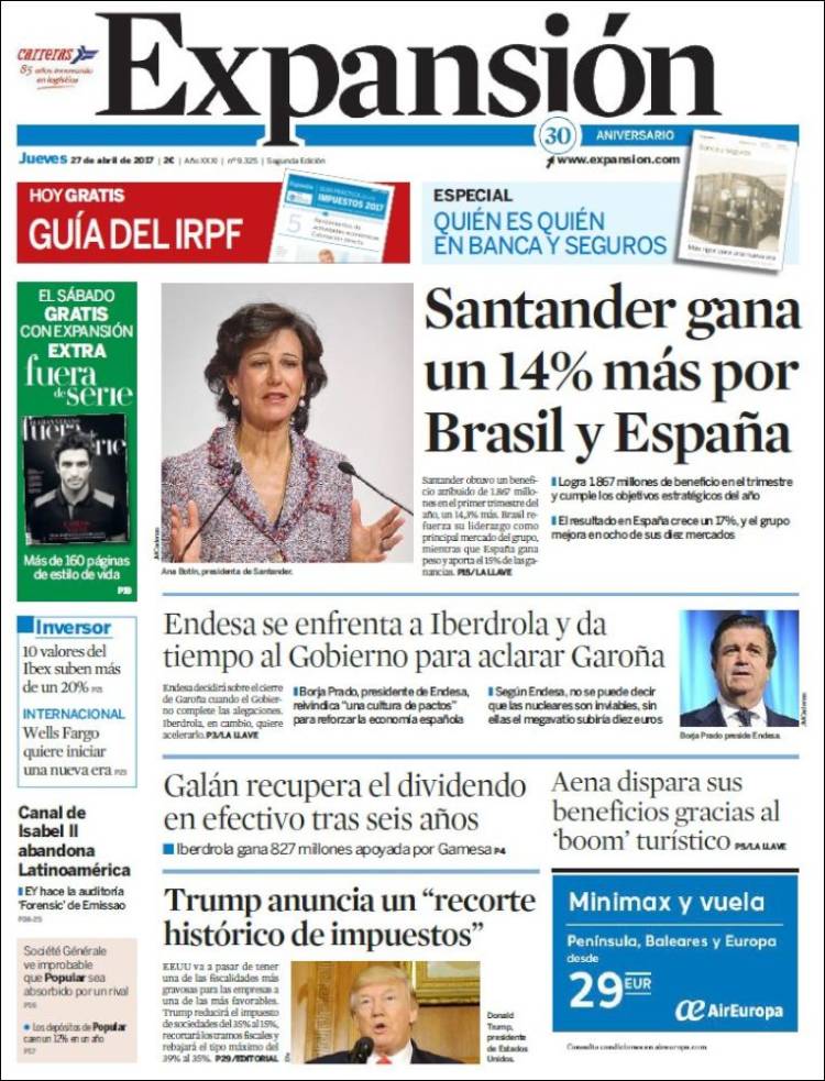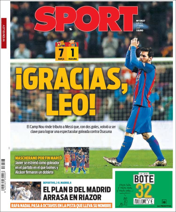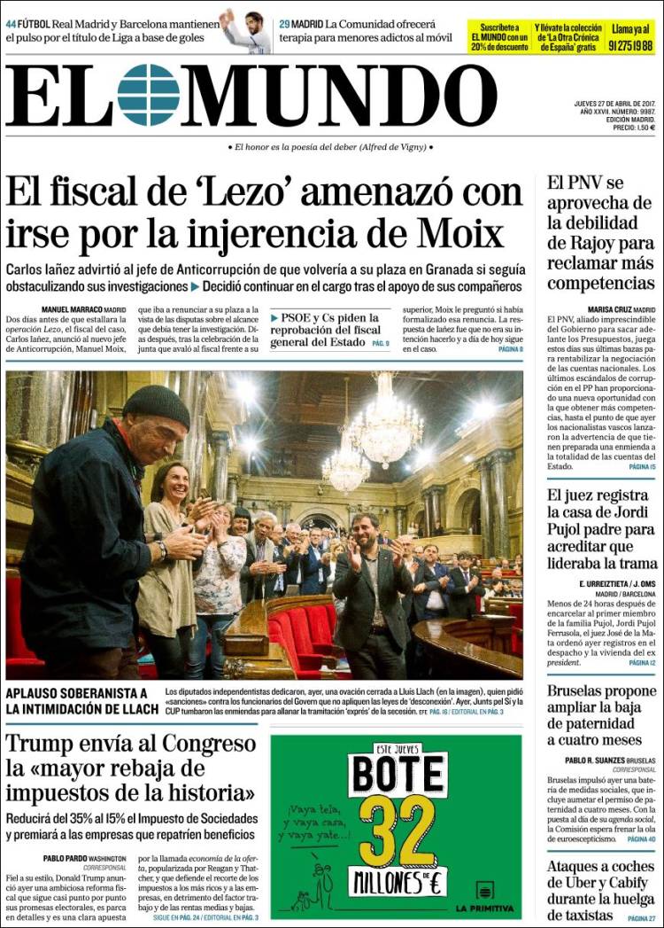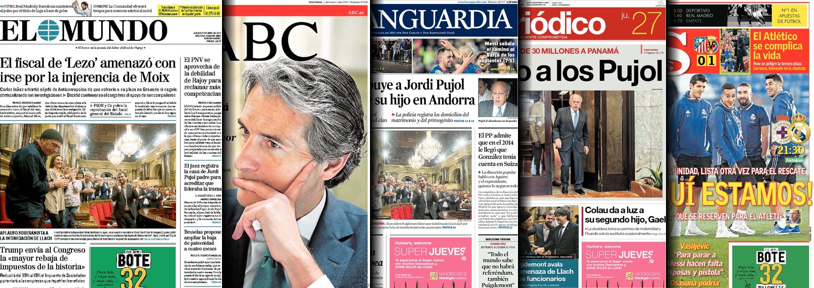 Portadas de los diarios El Mundo, El País, ABC, La Razón, La Vanguardia, El Periódico, Cinco Días, El Economista, Expansión, As, Mundo Deportivo y Sport.