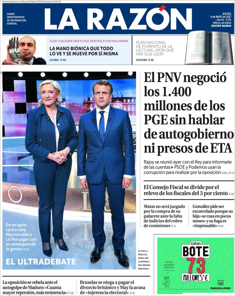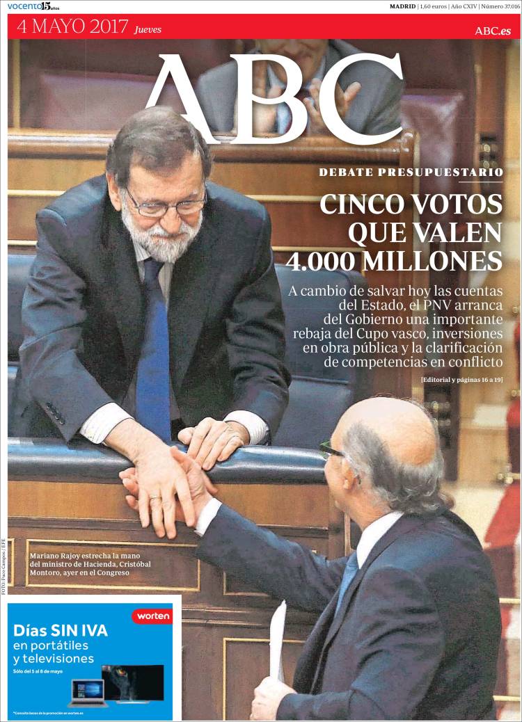 Los restaurantes exclusivos en los que se reunía la trama Koldo: este es el precio del jamón y las gambas Paco Cobos | Pablo Pardo Las imágenes que destapan el abandono de las vías de Cercanías en Barcelona: óxido y sujeciones destrozadas Carlos Cuesta Secciones Portada Opinión España Andalucía Madrid Canarias Valencia Internacional Defensa Corazón Viajar y Comer Deportes Sucesos Cultura Libros Cine Series Tecnociencia Salud Vídeos Fotos Canales Servicios Me lo compro Yo quiero uno Tráfico Precio gasolineras Radares El Tiempo Gestiona tu patrimonio Participación Móviles Boletines RSS Versión accesible Últimas noticias Archivo Hemeroteca Personajes Lugares Empresas Organismos Temas Eventos LD Redes Facebook X Instagram YouTube WhatsApp Telegram