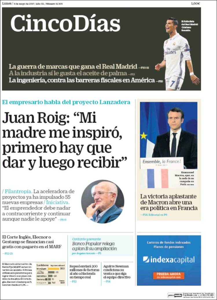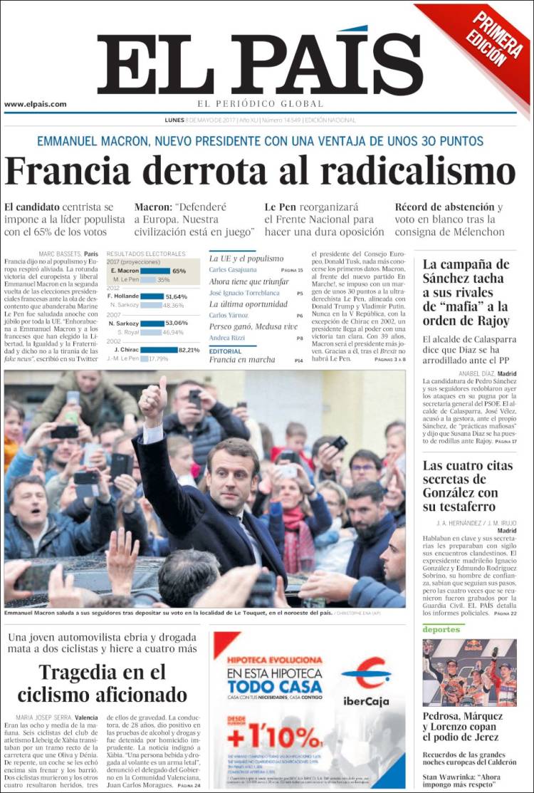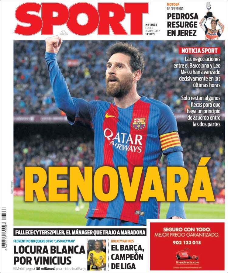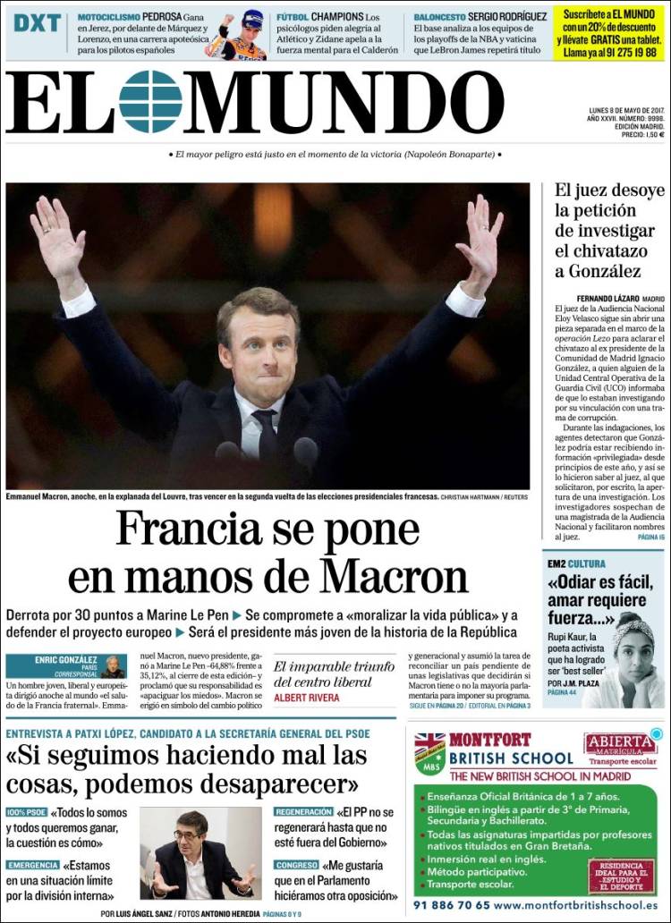 Portadas de los diarios El Mundo, El País, ABC, La Razón, La Vanguardia, El Periódico, Cinco Días, El Economista, Marca, As, Mundo Deportivo y Sport.