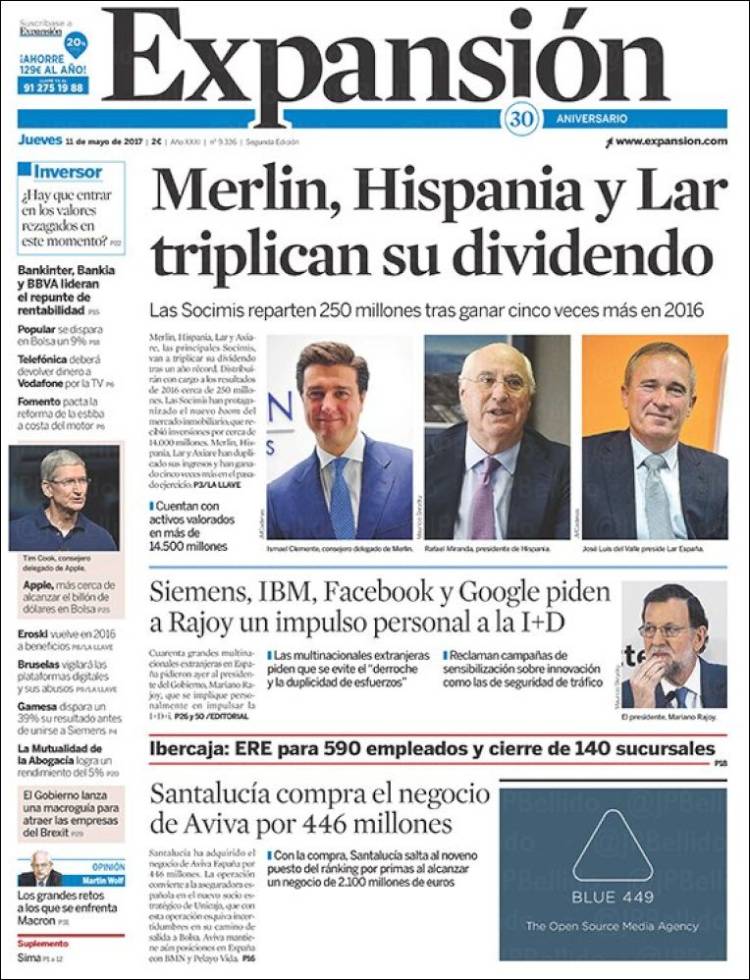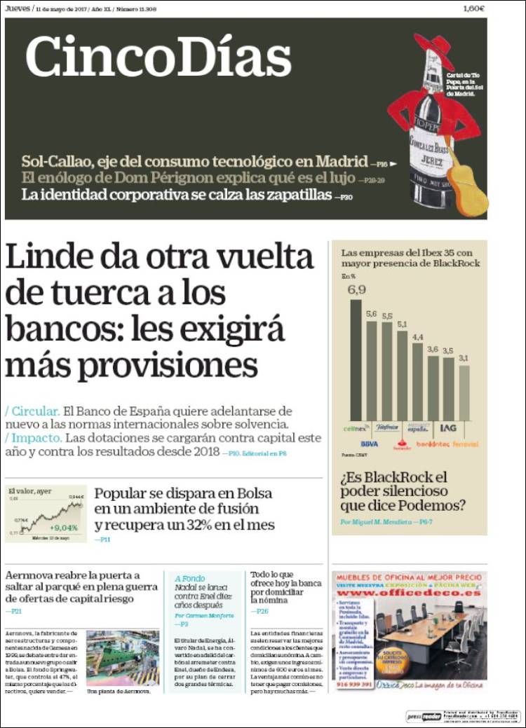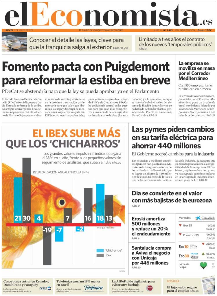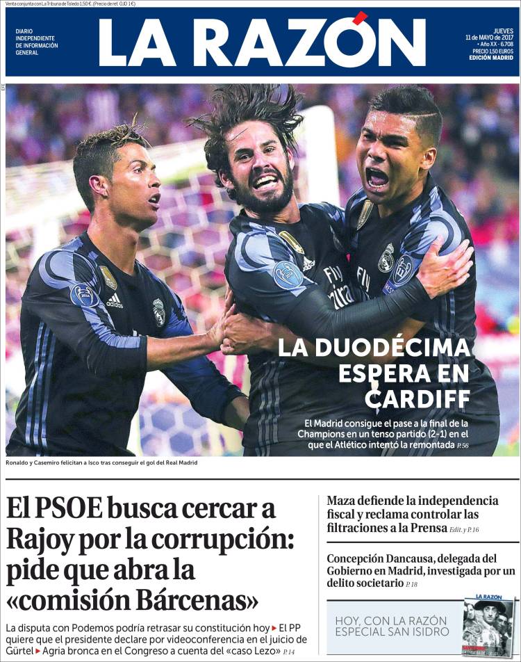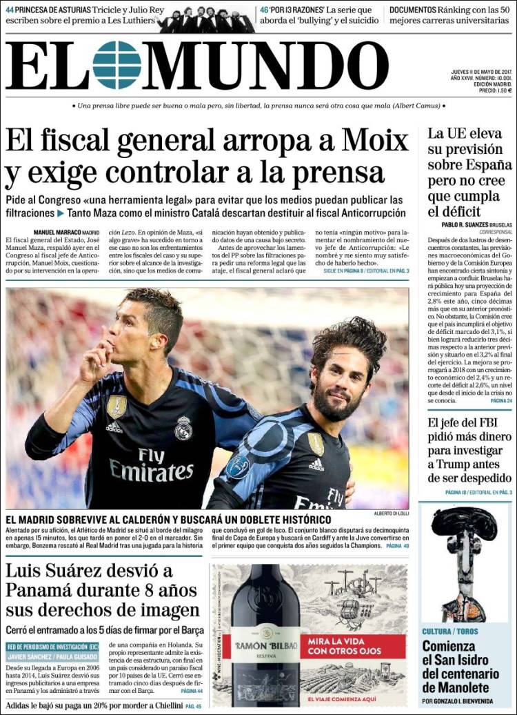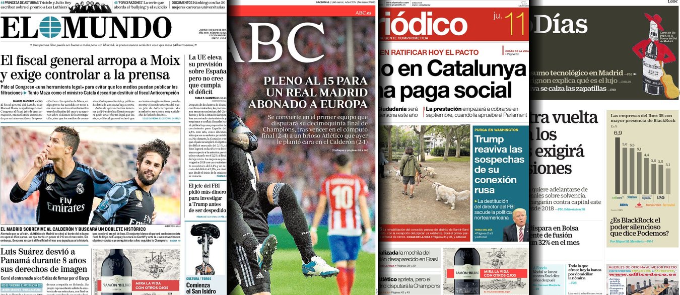 Portadas de los diarios El Mundo, El País, ABC, La Razón, La Vanguardia, El Periódico, Cinco Días, El Economista, Expansión Marca, As, Mundo Deportivo y Sport.