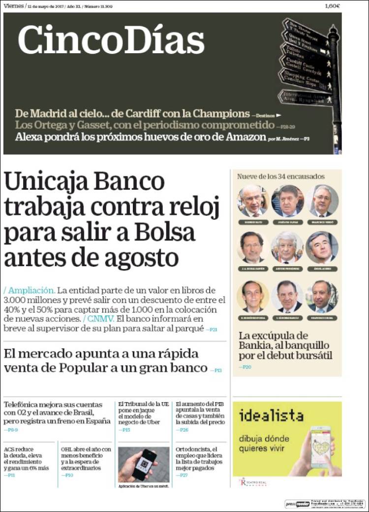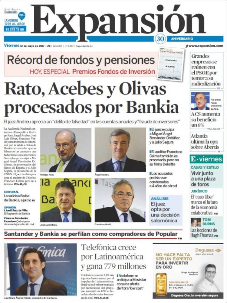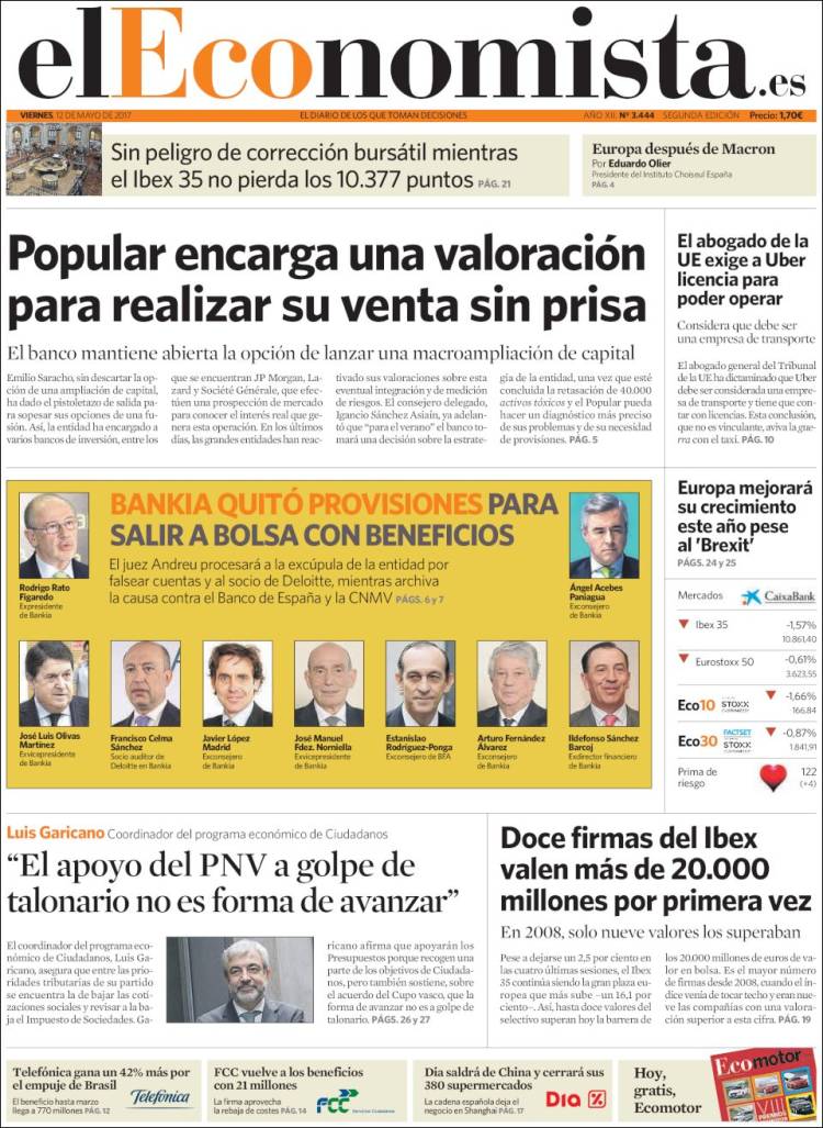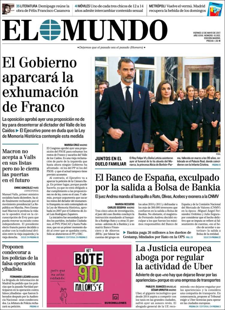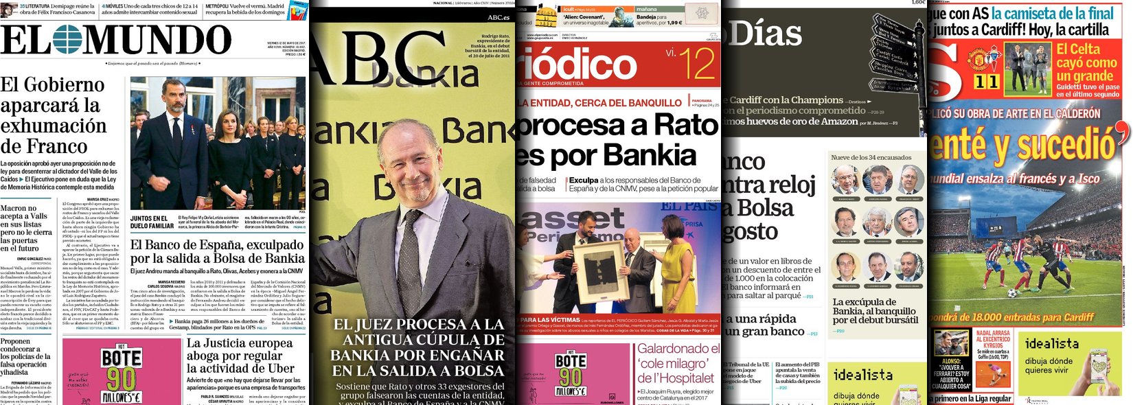 Portadas de los diarios El Mundo, El País, ABC, La Razón, La Vanguardia, El Periódico, Cinco Días, El Economista, Expansión, As, Mundo Deportivo y Sport.