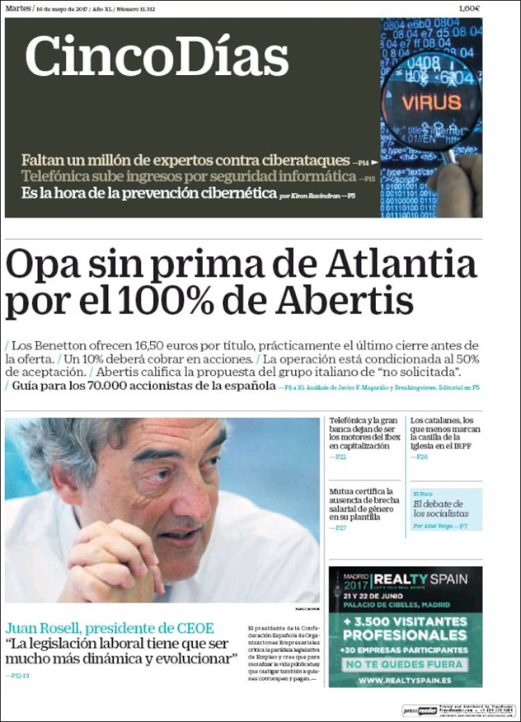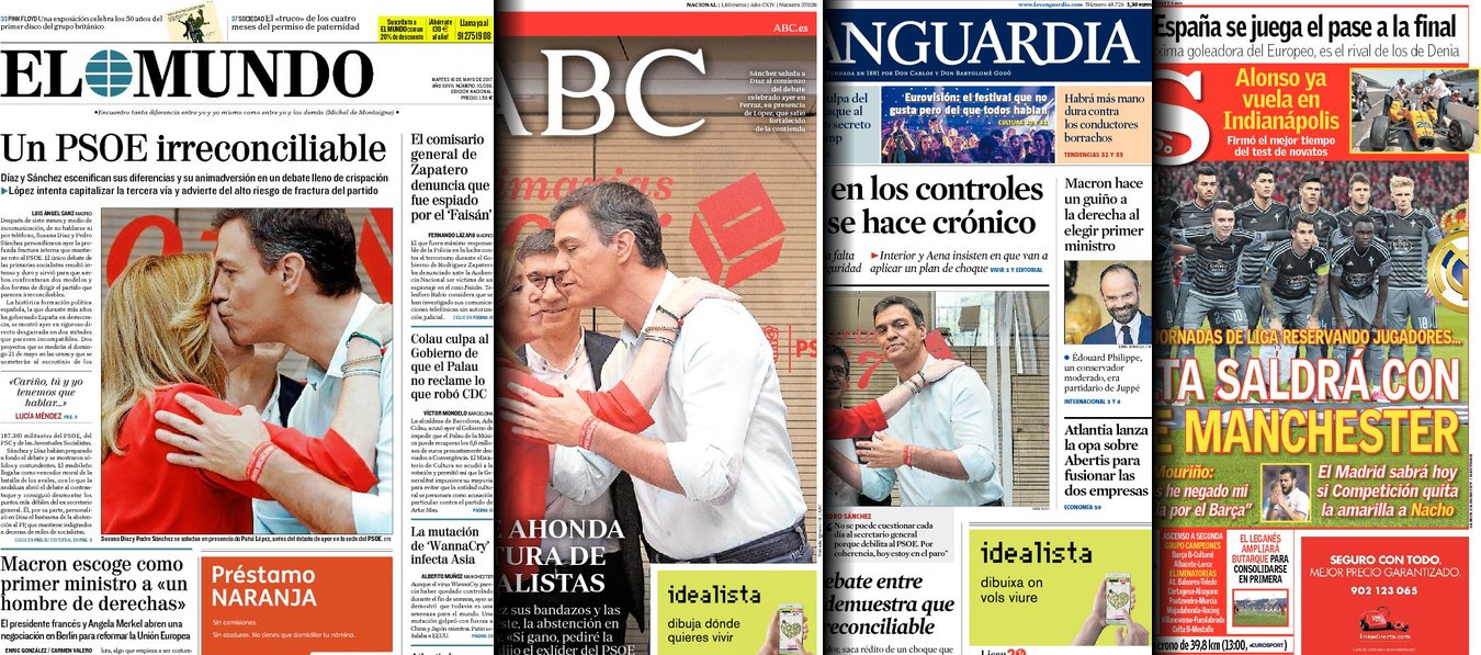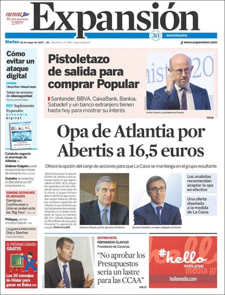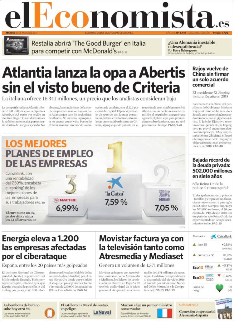 Portadas de los diarios El Mundo, El País, ABC, La Razón, La Vanguardia, Cinco Días, El Economista, Expansión, As y Mundo Deportivo.
