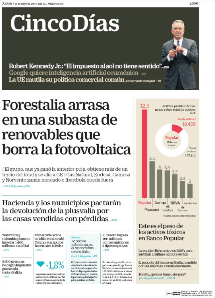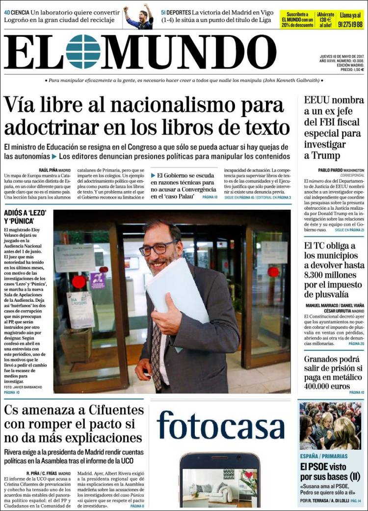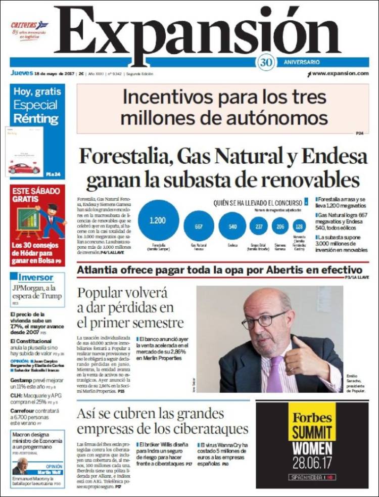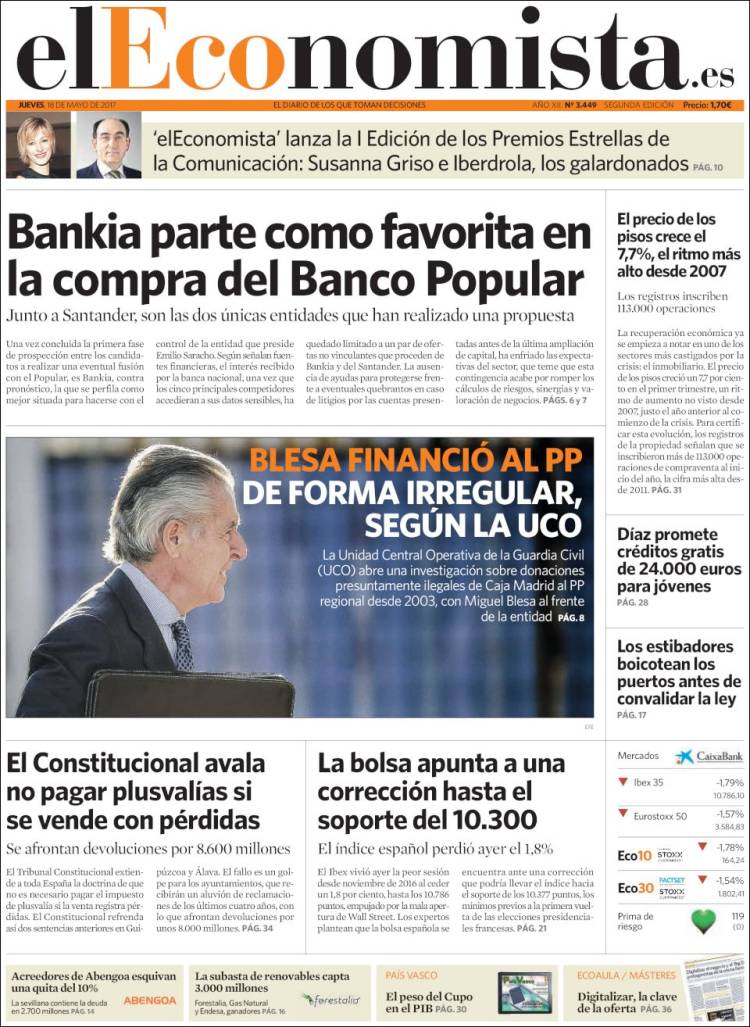 Portadas de los diarios El Mundo, El País, ABC, La Razón, La Vanguardia, Cinco Días, El Economista, Expansión, As, Mundo Deportivo y Sport.
